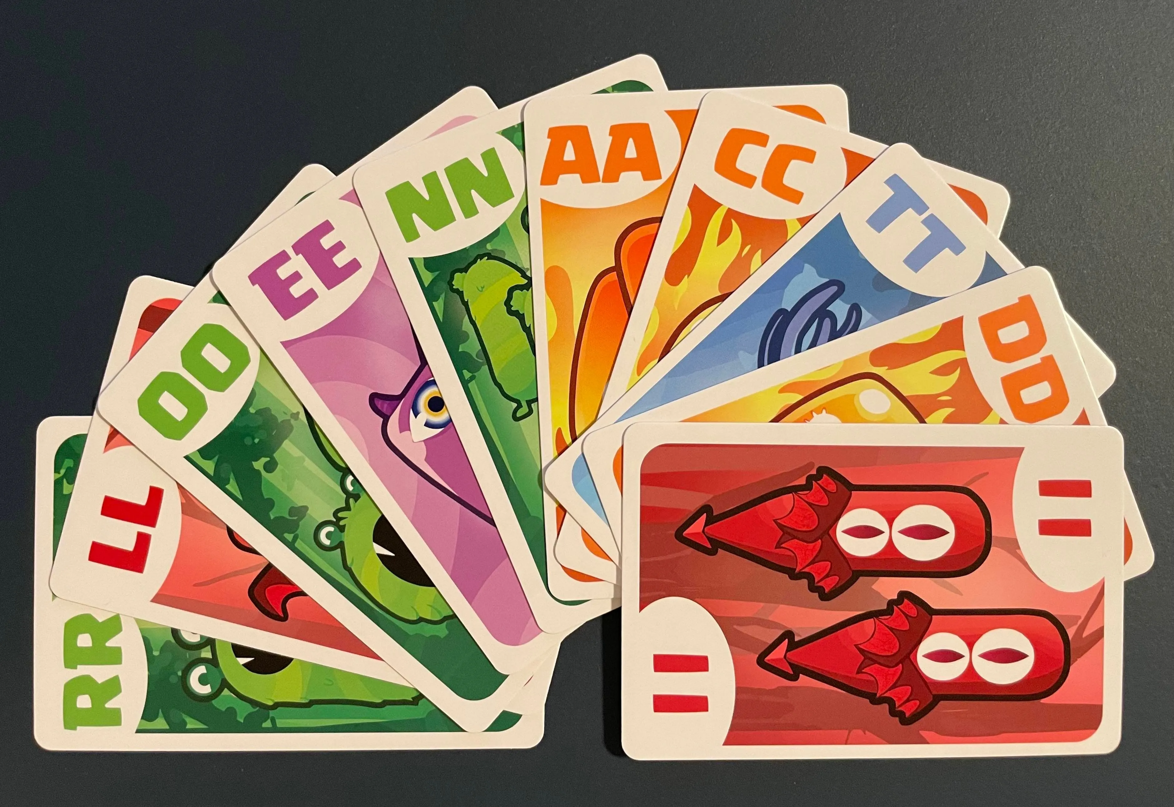 Each round, Alphabeasts will attack individual players as well as the middle of the playing area. Players will then think of one word to fight off as many Alphabeasts as they can. An Alphabeast can only be defeated if the letter is contained in the word, and an Alphaboss can only be defeated if the word fulfills a specific condition.