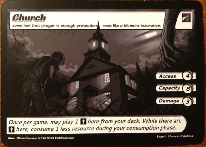 Your deck of cards represents your supplies and resources during these trying times. During the game you will consume these resources and do your best to replenish them while trying to force your opponent to waste through his own. Once you run out of supplies, you no longer have the capacity to survive and are out of the game.