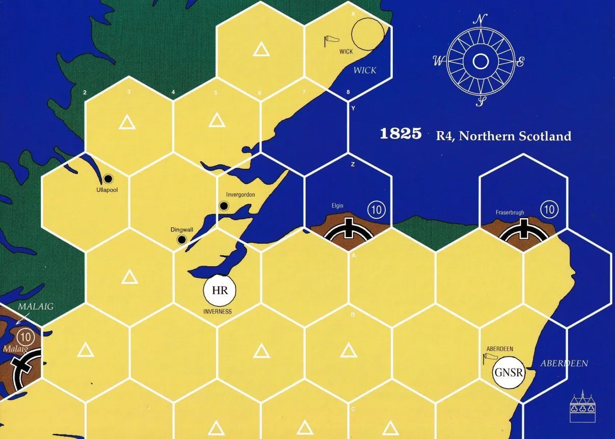 The final unit in Francis Tresham’s 1825 series. This one covers the north of England & Scotland. Unusual for an 18xx game it is designed for two players. This is a stand alone game, although it can also be used in conjunction with Unit 2 (Midlands) and Unit 1 (Southern England).
