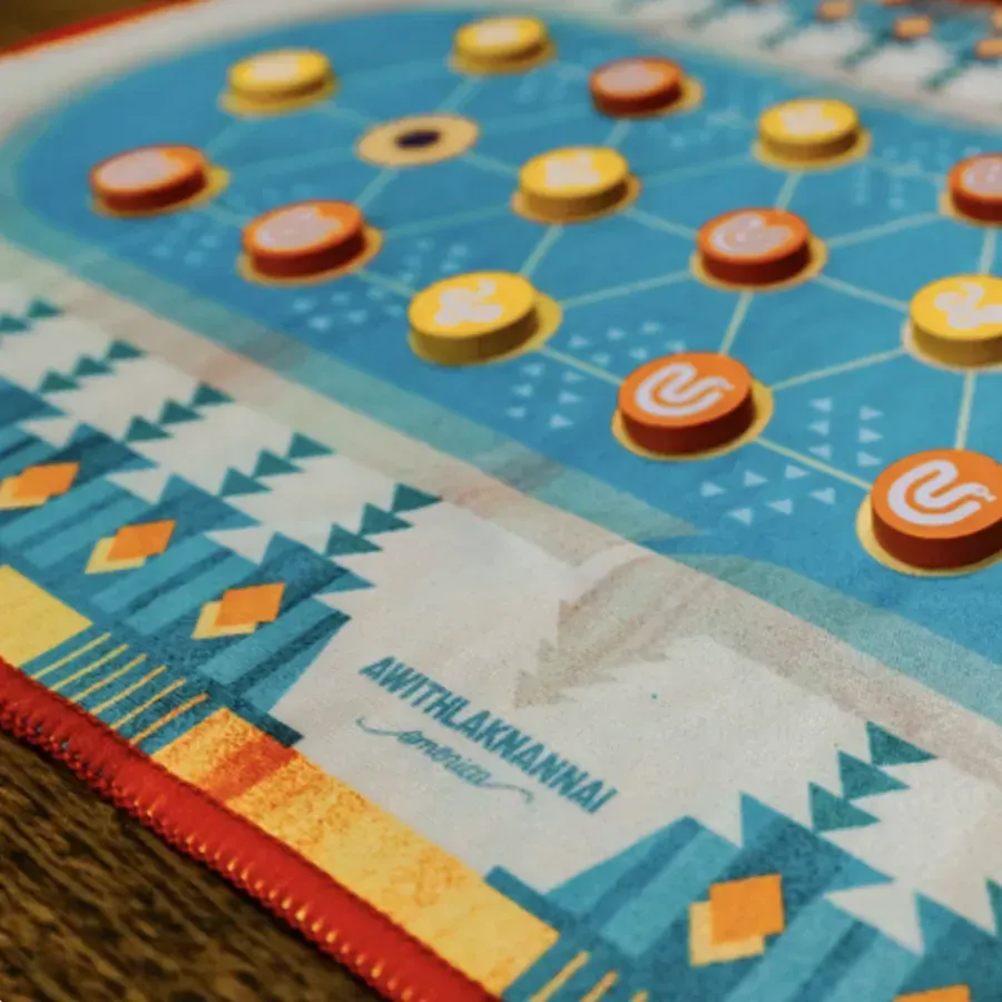 This game is played by Zuni Indians in New Mexico. It’s very similar to Alquerque, and Fighting Serpents, though the latter uses more spaces on the board.