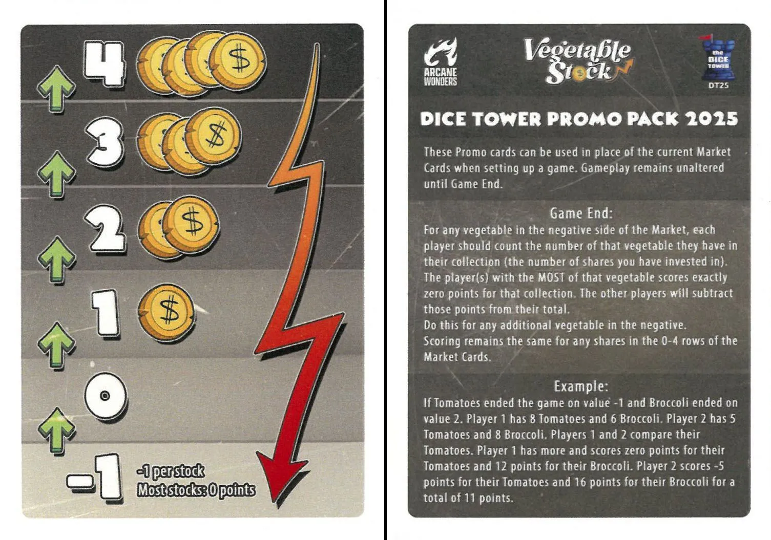Vegetable Stock, qui a fait ses débuts sous le nom de Small Farmer, est un jeu de cartes simple sur l'économie des légumes. À chaque tour, révélez une carte de plus que le nombre de joueurs sur la table.