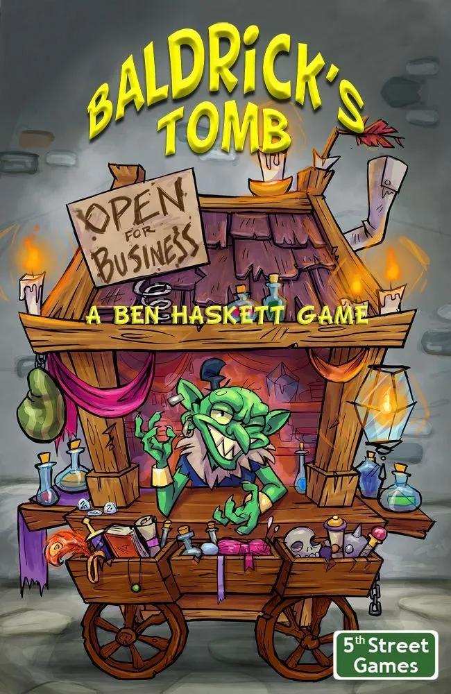 Baldrick’s Tomb is a roguelike board game for 2-4 players. The game takes place in a four-story, underground tomb that is constantly being churned from the inside out by the late sorcerer Baldrick. The locations of everything – including treasures, traps, monsters, and even the exits – are completely randomized for every game as a result of Baldrick smashing the crypt to bits. The players are tasked with making their way down to the bottom of this tomb, collecting a precious treasure, then climbing back out.