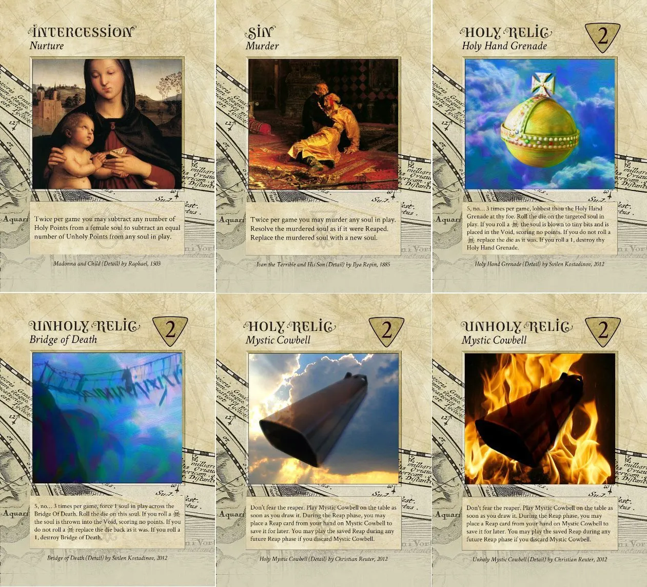 Sin, Intercession, and Relic cards can be purchased for beneficial effects at the cost of holy and unholy points. These help to make for deep gameplay and excellent risk-reward scenarios. Invest in these cards to strengthen your position.