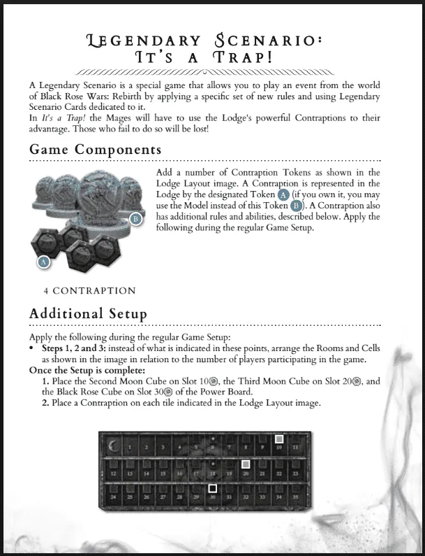 Every player represents a Mage in this struggle to prove themselves as the true beholder of the Black Rose’s power. The mages will program spells to their board and execute them in turn order. Those spells may disable other mages spells, arm traps, arm powerful defensive moves, deal damage, or summon otherworldly beasts. The battle is played out on a hexagonal arena that requires tactics and planning to ensure each mage can pull off the perfect move. When a mage finally succumbs to their wounds, they will die and return to their room. This disrupts position and planning but no mage is ever out of the fight!