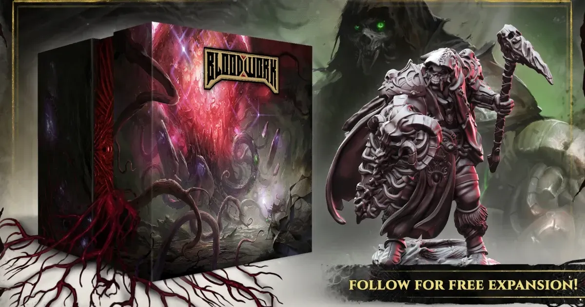 Bloodwork est un jeu de plateau coopératif de dark fantasy pour 1 à 4 joueurs, se déroulant dans un monde ravagé par la mort de sa Déesse et la corruption cosmique qui s’en est suivie. Menez un groupe de mercenaires de guilde à travers une campagne à embranchements et deux factions, en choisissant de vous allier aux Chevaliers de Xalgaran ou aux Tribus Orques. Vos décisions influenceront le cours des missions à venir. Survivez à des voyages périlleux semés d’embuscades, de reliques, de dangers et d’opportunités fugaces. Affrontez des batailles intenses sur grille où le positionnement, les capacités asymétriques et les choix entre risque et récompense sont déterminants.