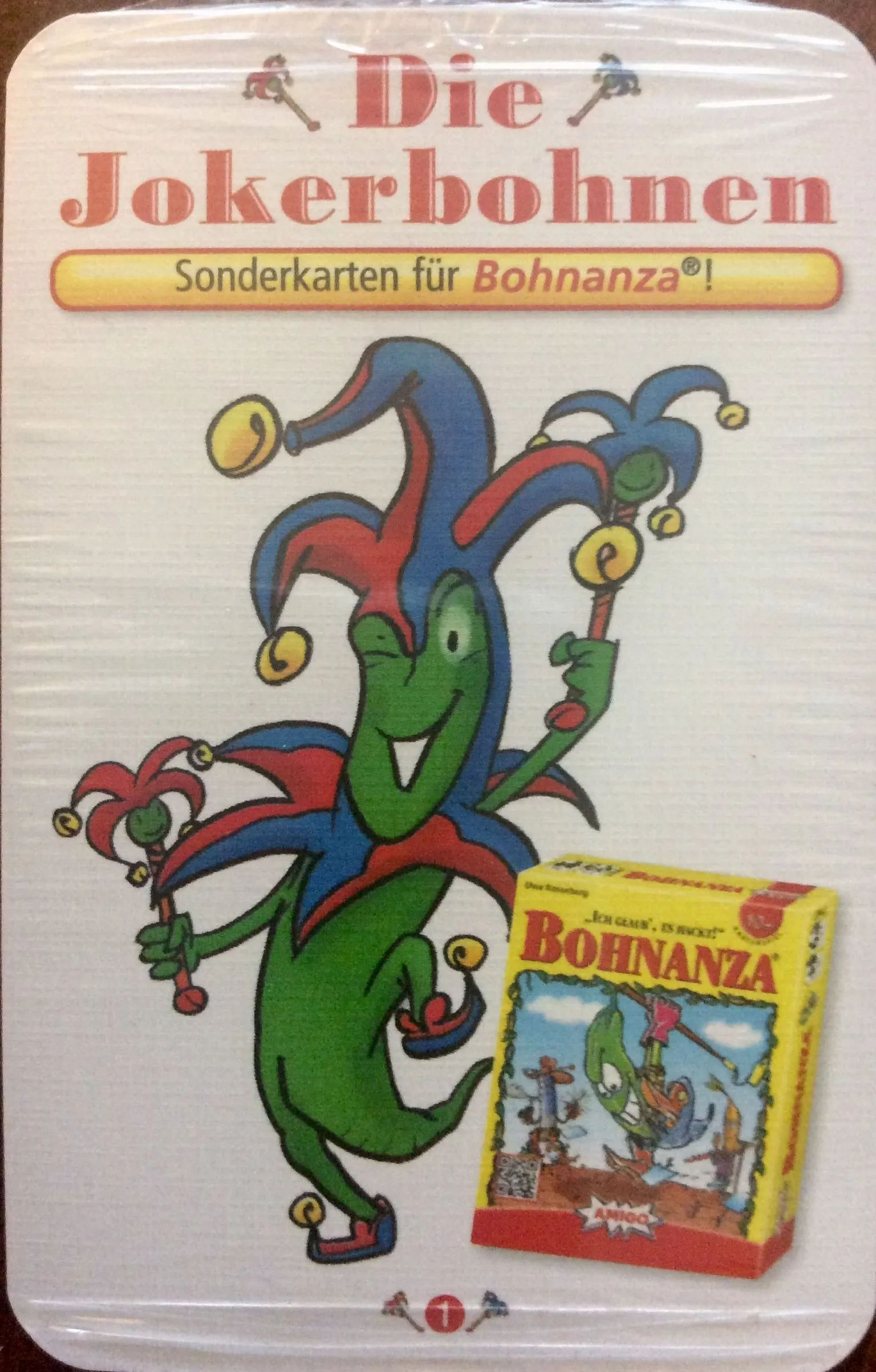 At the start of each turn, the active player plants two beans from their hand, then reveals bean cards from the deck as usual. Instead of trading, however, they offer their opponent one bean as a gift by pushing this bean type’s gift card in their direction. The other player can accept the gift or decline it, but if they don’t take it, they have to offer a gift in return. You are allowed to bluff, but it may cost you if your bluff is called! Important: Only the first player to accept a gift actually receives the bean card in question. After this exchange, plant all beans you have received and turned over, then draw new cards. “Bo(h)nus” cards can be fulfilled at any time when the required combination of beans printed on the card can be found in any bean field. Fulfilling an objective earns you bean dollars and the brand new bean cents. When the draw pile is used up, the player with the most bean dollars wins.