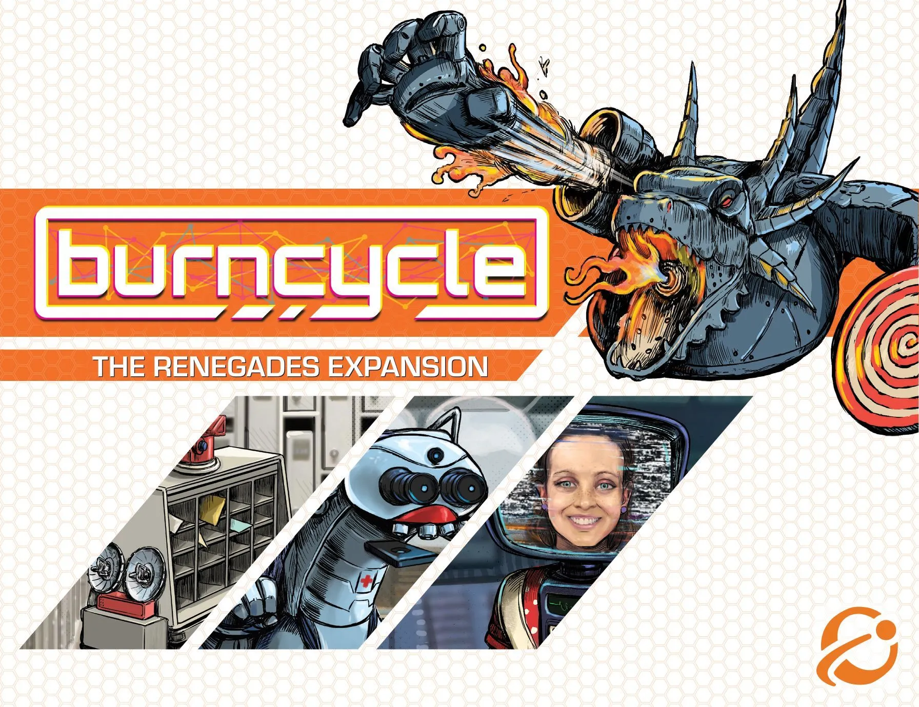 Key to this solo and cooperative experience is the idea of “creative action sequencing.” During each round of play, all players will contend with a randomly drawn set of programming directives, which tell them in what order their bots are allowed to take physical, digital and command actions. Players can choose to skip over directives at the cost of having an incomplete turn, or they can disobey the directions by paying costly action dice. The best players, however, find a way to work within the “burncycle”: essentially, organizing their actions so that they benefit the team while staying within the directive order.