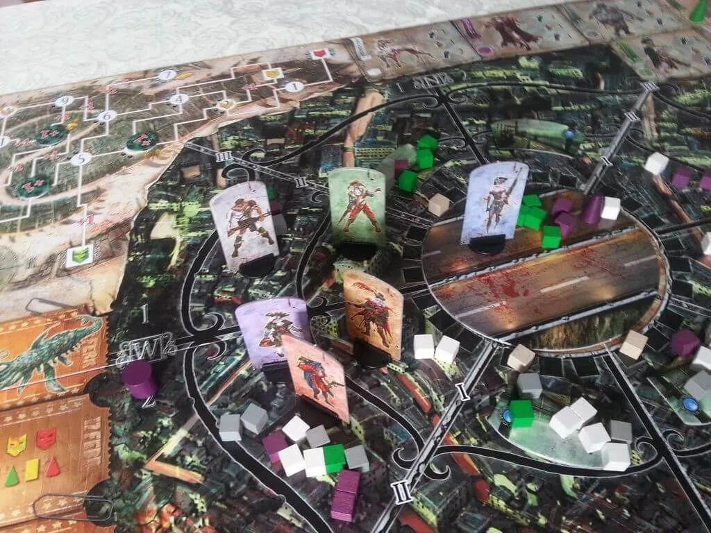 Bienvenue dans une Venise de cauchemars…Dans CARNIVAL ZOMBIE les Joueurs guident un Groupe de Personnages qui fuit les horreurs qui ont émergées de la lagune vénitienne pour se déchaîner contre la foule attirée par le Carnaval. CARNIVAL ZOMBIE est un jeu coopératif : les Joueurs triomphent ou perdent ensemble et le jeu lui-même est leur adversaire.Le Groupe de Personnages doit quitter la cité en s’ouvrant un chemin à travers des hordes putrides d’Infectés. Mais le temps presse. Le Léviathan, qui supporte les fondations de Venise, est en train de s’éveiller et c’est une question de jours avant que la cité ne soit engloutie par les eaux sombres de la lagune. C’est le jour et la nuitChaque partie se divise en plusieurs Jours et Nuits. Pendant la Nuit, les Personnages se réfugient derrière des barricades improvisées pour contenir les assauts des Infectés. Durant le Jour, le Léviathan appelle les Infectés dans les abysses pour l’aider à échapper aux pilotis qui le clouent au sol limoneux de la lagune. Alors que la cité tremble sous ses coups de butoirs désespérés, les Personnages doivent traverser Venise à la recherche d’une issue.Les Personnages ont plusieurs moyens de fuir, mais peu de temps pour y parvenir. Et en chemin, des Boss, les serviteurs les plus implacables du Léviathan, leur feront obstacle. Le jour, les Infectés retournent dans la Lagune, répondant à l’appel du Léviathan dont les secousses marquent le réveil…Durant le Jour, le Groupe se déplace à travers la cité à la recherche d’une issue et se prépare au mieux pour survivre à la nuit, derrière des barricades. À la nuit tombée, les morts émergent de la lagune…Durant la nuit, les Personnages sont à présent dans un Refuge et essayent de résister à l’assaut d’une horde d’Infectés menée par des Boss terrifiants : durant cette phase, le Groupe se bat pour sa survie ! Vaincre ou périrLes Joueurs peuvent gagner de deux façons : en fuyant Venise ou en tuant le Léviathan. Fuir est la méthode la plus simple et la plus efficace. Tuer le Léviathan est plus difficile et nécessite de trouver la Bombe Sanctifiée pendant la partie.Il y a trois moyens de quitter la cité :A) Échapper aux Infectés et atteindre le continent en franchissant le Pont de la Liberté ;B) Trouver un Bateau pour naviguer sur la lagune sombre et brumeuse de Venise et atteindre les côtes avant que la horde de morts-vivants ne réussisse à le couler ;C) Contacter le pilote du Dirigeable depuis le Campanile de San Marco pour être évacué à l’Aube depuis le cimetière de l’Île San Michele Le chaos de la première nuit a déjà des conséquences : certains de vos camarades ont été dépassés avant de pouvoir se joindre à vous. Votre équipe est dispersée et il sera encore difficile de s’enfuir dans ces conditions. Autour de vous, la Cité est pleine de peintures, de fresques, de mosaïques et de vitraux exposant la vie et les accomplissements des Saints. Si vous pouviez vous en inspirer pour développer la même volonté inébranlable qu’eux, vous pourriez bénéficier d’incroyables bénédictions, probablement nécessaires pour surmonter les défis qui vous attendent.