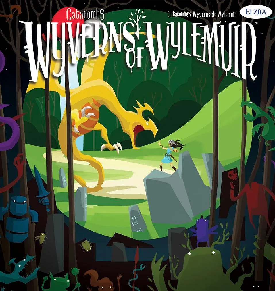 Catacombs and Castles supports up to eight players competitively (in “Team Mode”) and up to four co-operatively (players teamed against an ‘Overseer’ player called “Boss Mode”). The game is compatible with the third edition of Catacombs, serving as an expansion for that title with a new board, and will be compatible with the Catacombs: Wyverns of Wylemuir expansion.