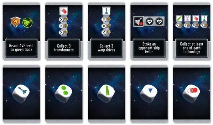 Cosmic Run: Rapid Fire is a standalone, 1-2 player sequel to Cosmic Run. It’s a quicker, yet more aggressive game because it includes direct attacks on your opponent. It is also a very portable game consisting of just ten dice and score sheets.