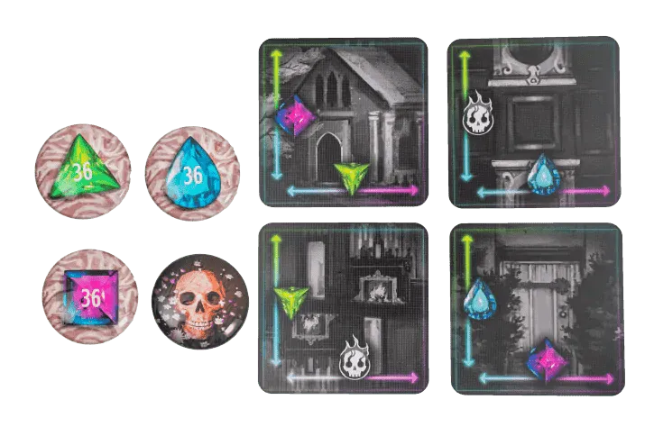 La légende raconte que le Manoir Spectral abandonné s’anime aux douze coups de minuit d’une Lune Cramoisie, un événement qui se produit rarement plus d’une fois par siècle. Cette nuit-là, et cette nuit-là seulement, de vastes trésors apparaissent dans certaines pièces, offrant une richesse inouïe à ceux qui sont assez courageux pour les trouver et les réclamer. Mais ceux qui pénètrent dans ce manoir le font à leurs risques et périls, car certaines pièces réveillent des fantômes et des malédictions qui s’abattent sur tous ceux qui sont assez fous pour y pénétrer. Les rumeurs parlent de glyphes et de sigils que l’on ne trouve dans le manoir que la nuit de la Lune Pourpre ; ces marques offrent des indications et des indices - indiquant à la fois où l’on peut trouver des trésors et où des pièges paranormaux sont à l’affût.