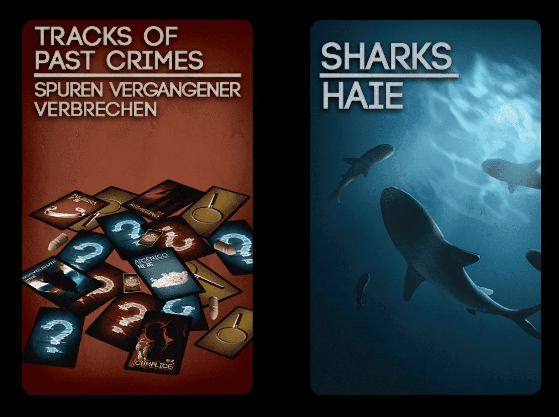 En début de partie, un médecin légiste est désigné. Chaque autre joueur reçoit secrètement une identité (Meurtrier ou Enquêteur), puis 4 cartes «Mobile » et 4 cartes « Arme du crime », qu’ils disposent face visible devant eux.