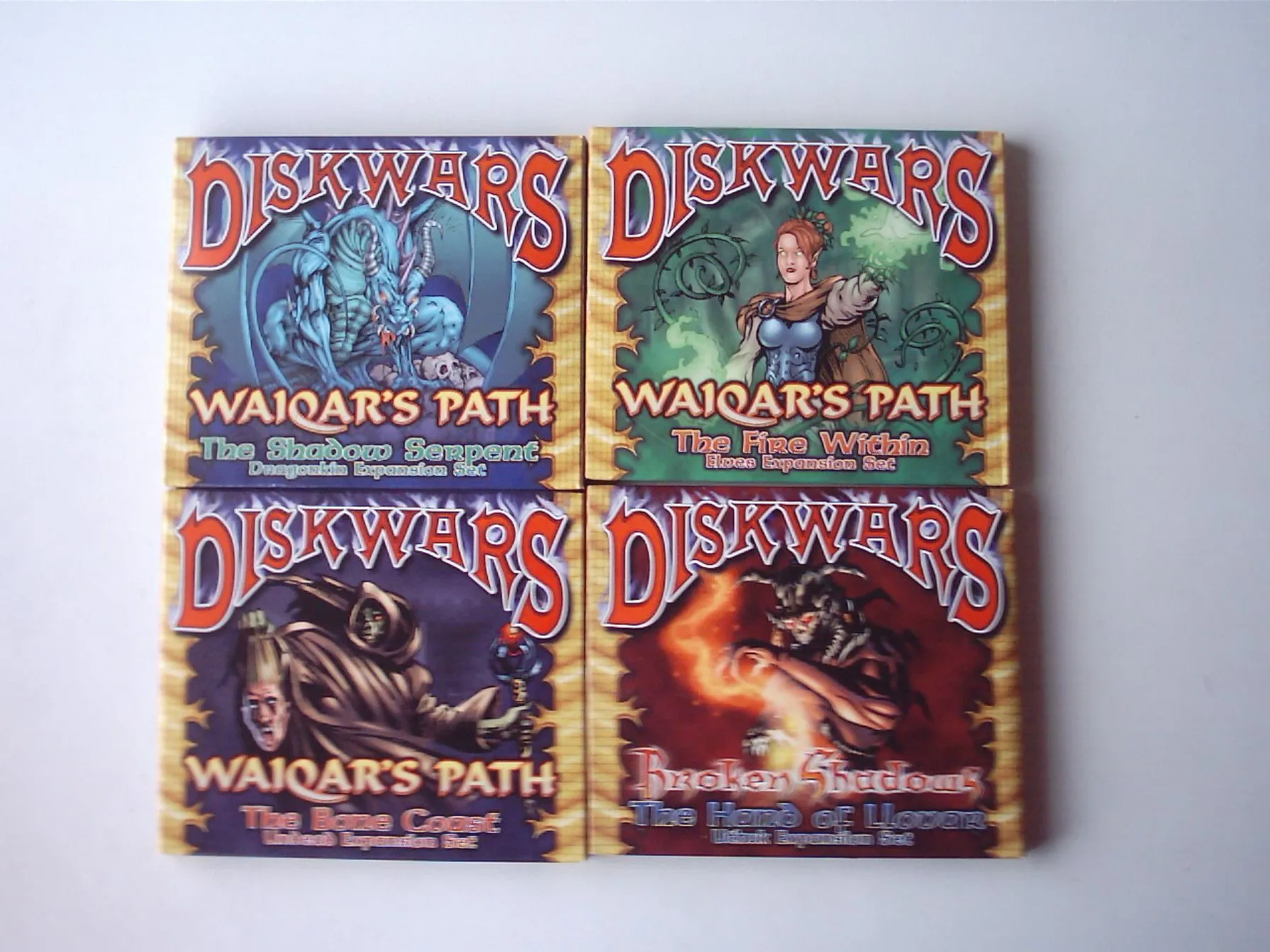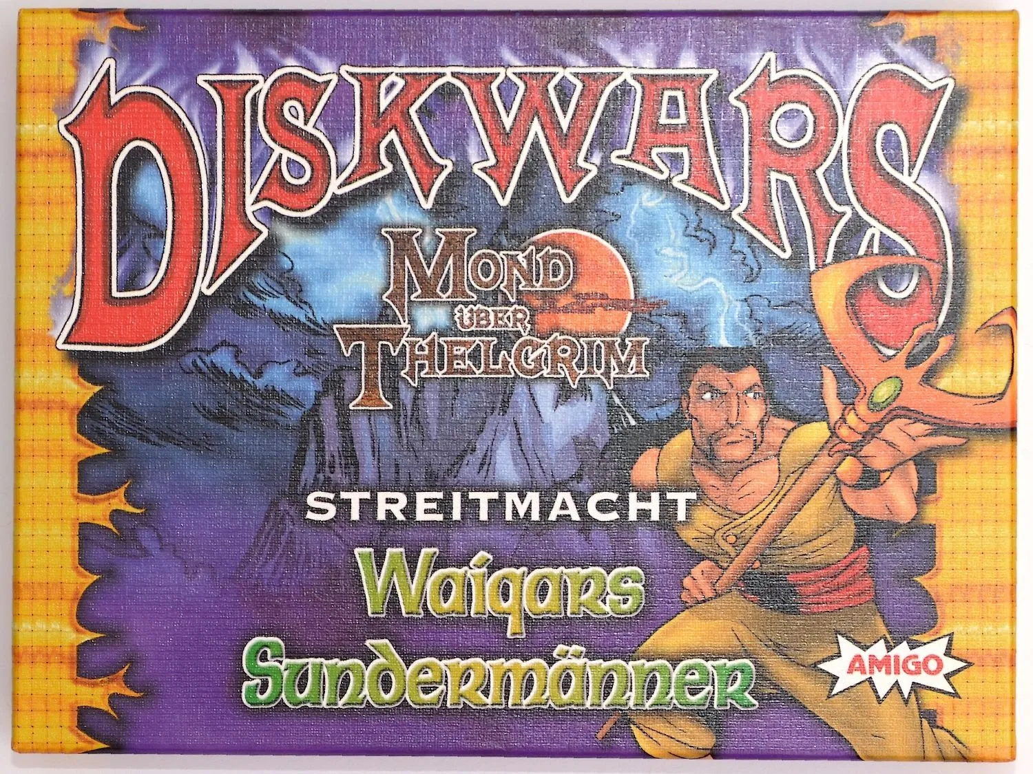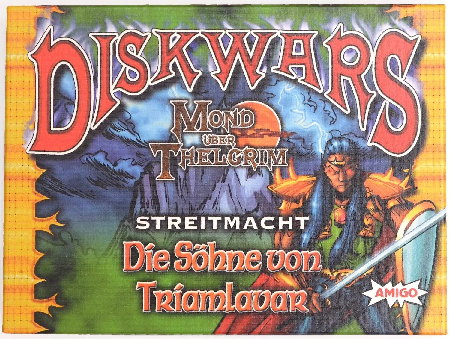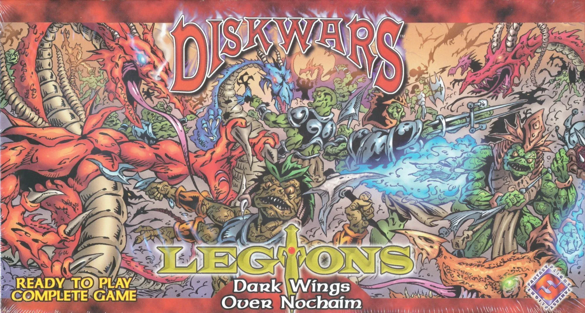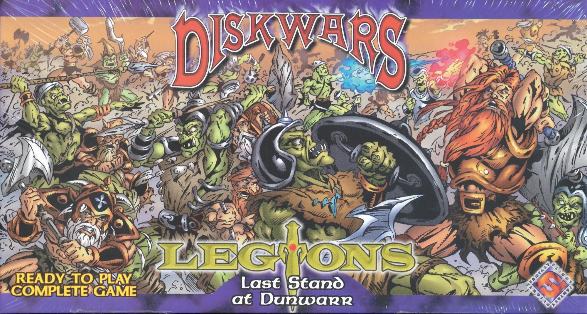 A Fantasy themed miniatures wargame without the miniatures. Will you play as the ubiquitous Elves, the barbaric Uthuk Yllan, the stalwart Dwarves, the vile Undead, the medieval Knights, the desert dwelling Acolytes, the mighty Dragon kin, or the vicious Orcs? Players choose a faction from the eight available in the base game and an army point value for the battle. Each must then build an army using the double-sided cardboard disks and battle it out. At least half of the army points must be from one faction and the remaining points are made up of like aligned or neutral disks and spells.