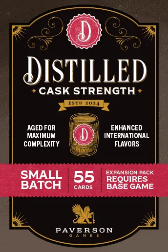 Dans Distilled, vous avez hérité d’une distillerie, et vous espérez atteindre un jour le titre de maître distillateur en achetant des marchandises, en construisant votre distillerie, et en créant les spiritueux les plus renommés du monde. Utilisez des cartes pour acheter de nouveaux ingrédients et investir dans l’amélioration de votre distillerie, tout en finissant par distiller le spiritueux et l’envoyer à l’entrepôt. Une fois dans l’entrepôt, faites vieillir votre spiritueux pour en améliorer la saveur et mettez-le en bouteille pour le vendre avec de gros bénéfices ! Obtenez le titre de Maître Distillateur en ayant le plus de points de victoire à la fin du jeu. Les points sont obtenus en distillant et en vendant des spiritueux.