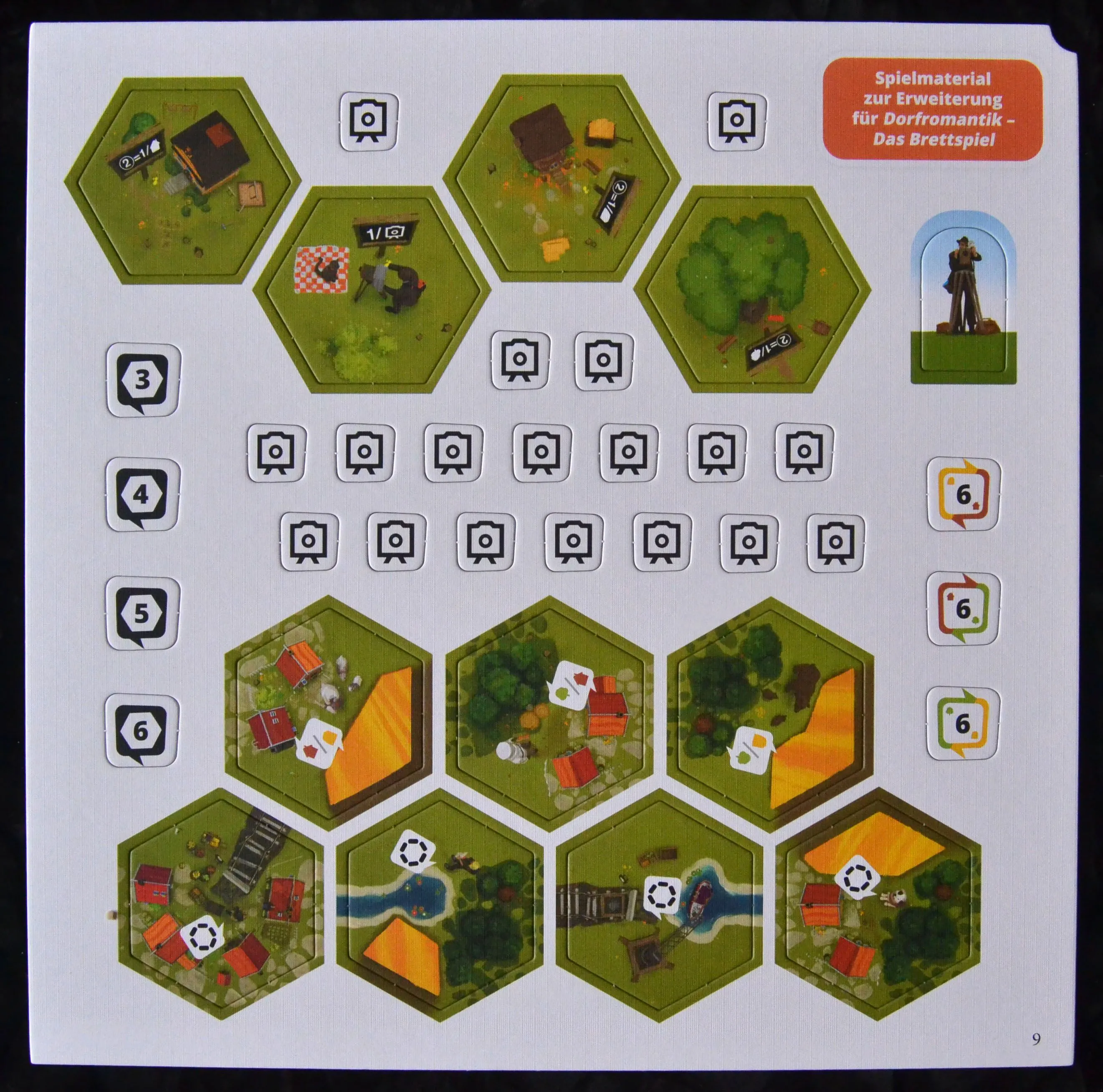 In Dorfromantik: The Board Game, up to six players work together to lay hexagonal tiles to create a beautiful landscape and try to fulfill the orders of the population, while at the same time laying as long a track and as long a river as possible, but also taking into account the flags that provide points in enclosed areas. The better the players manage to do this, the more points they can score at the end. In the course of the replayable campaign, the points earned can be used to unlock new tiles that are hidden in initially locked boxes. These pose new, additional tasks for the players and make it possible to raise the high score higher and higher.