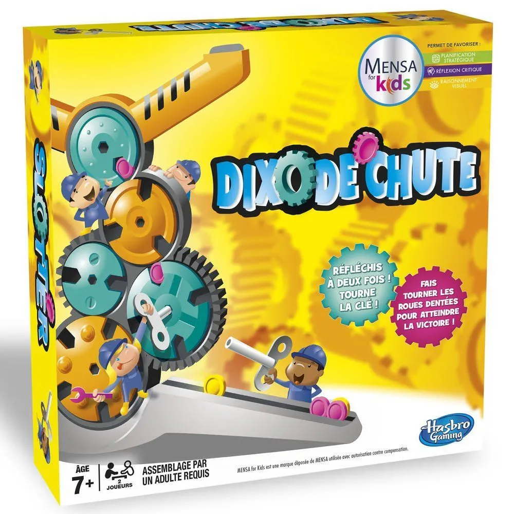 The players have between them a screen with five knobs in it. These knobs link chutes running from the top of the game to its base. The top chutes are loaded with your coloured discs in sequence (1 through 5). On your turn, you twist one of the knobs so as to move one of your discs down. The knobs don’t have the same indentations for either player, so you’re never sure if you’re helping the opponent or not.