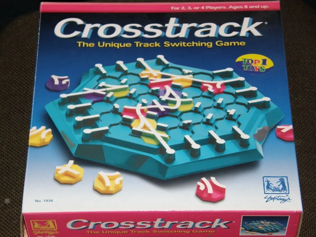 Object - The first player to make a continuous track connecting any two opposite sides of the gameboard is the winner. The continuous winning track must be unbroken and connect directly from any one of the four terminals on one side of the board to any one of the four terminals on the opposite side of the board. Players may play any octagonal piece from his stock of unplayed pieces, rotate any of his pieces already on the board, relocate any of his pieces, or place any of the common stock of pieces to make connections.