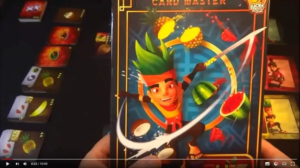 FROM THE BOX: Based on the hit game. Make Sensei proud! Cut the deck–select the top or the bottom. The first player to collect one of each fruit or 25 of any fruit wins! The colors on the card backs will help you choose. Be wary! Bombs end your turn and you forfeit this turns bounty. Power bananas grant special ninja powers.