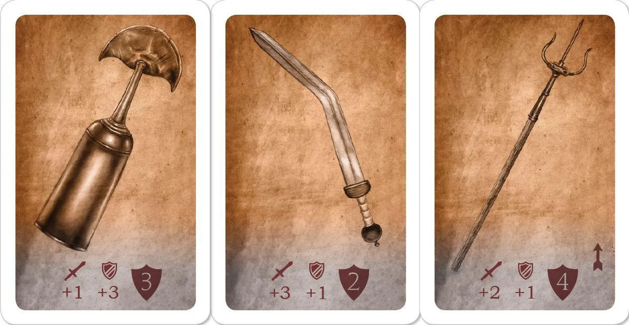 This is not the usual fast, face-to-face combat game in which you attack opponents with a roll of dice. It contains many strategic and tactical aspects, and no luck factors (other than in the solo game). Customization of characters makes the combat always different: Your gladiator may be strong against some opponents and weak against others. Let’s start finding your way to win!
