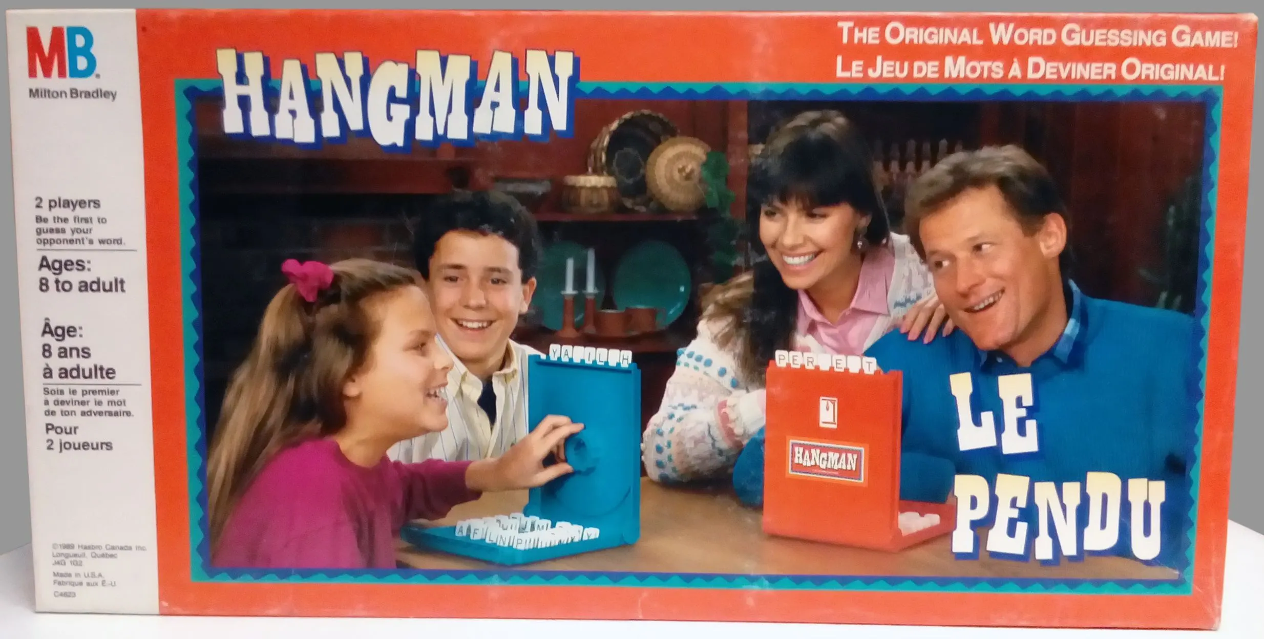 This is the classic letter guessing game with plastic cases to place letters in and to indicate how close the opponent is to being hung.