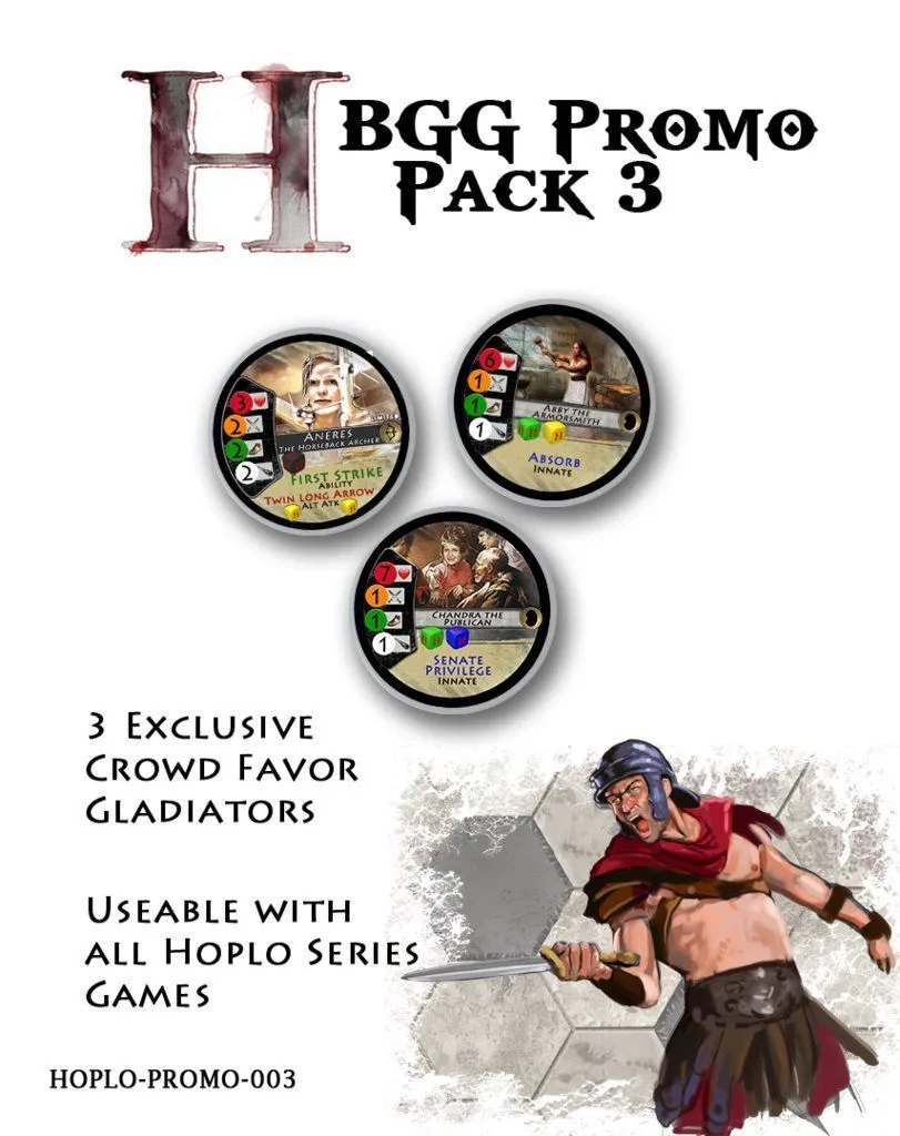 Hoplomachus: Origins takes you back to where the story begins, within the small battle arenas of 3 unique civilizations. You will represent one of the warrior houses found in these cities and will be battling for the right to represent your entire civilization in Rome. Quick fights, 3 exotic arenas, and competitive drafting of unique warriors, are what set Origins apart from our other 2 games in the series. Of course, it wouldn’t be Hoplo if you weren’t playing with premium 11.5 gram chips, neoprene mats, and custom dice!