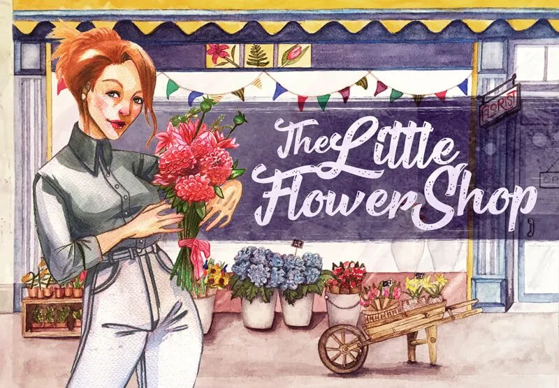 The Little Flower Shop is a light, yet strategic, set collection game featuring stunning artwork by botanical artist Sarah Wry. Mechanically, the game employs a familiar card drafting system of picking a card and passing the rest. The cards are then used according to their type. Vase cards are placed in a player’s shop window. Flower cards are tucked under the vases, provided they meet the vase’s requirements. Basket cards may be hung at the top of a player’s window, but only if they can buy the baskets first. Salary cards provide free income. Sale cards allow players to sell flowers to put additional funds in their register. At the game’s end, players score points for the best display of flowers in their windows.