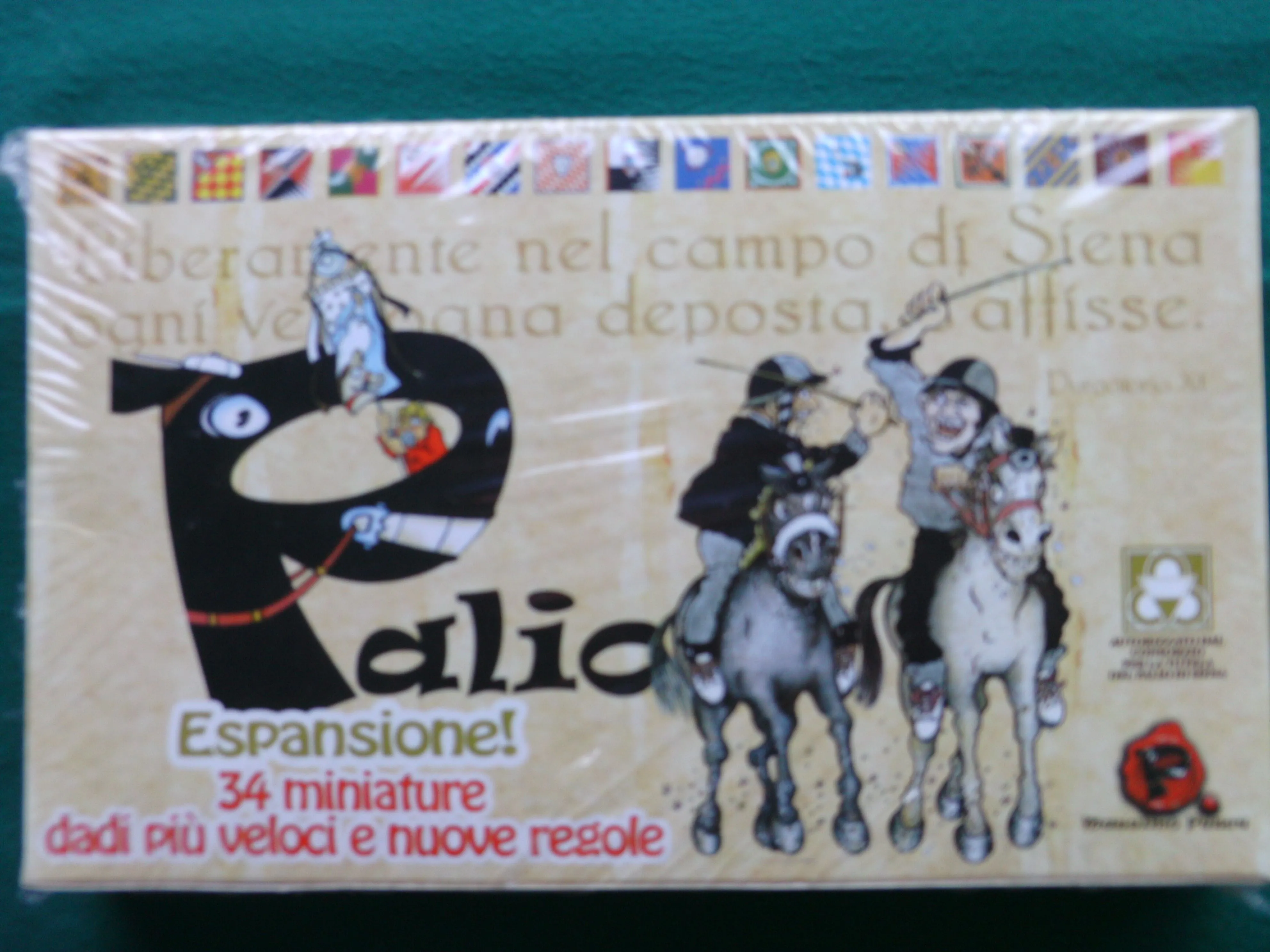 New Italian game designer Massimo Pesce, together with the help of Scribabs’ Paolo Vallerga as art director, has produced a nice and simple game about this race. The players control the seventeen Contrade involved in the two races, with ten Contrade taking part in the first race (Palio di Provenzano) and a different set of ten in the second one (Palio dell’Assunta). This set-up means that one or more players might hold Contrade involved with only one race.