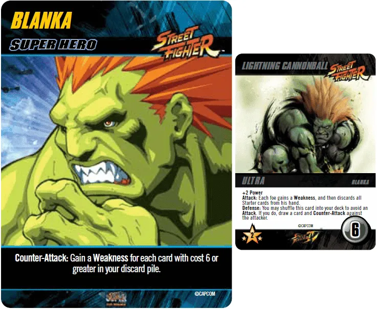 In the CapCom Street Fighter Deck-Building Game, you take on the role of Ryu, Ken, Chun-Li, Balrog, M. Bison or one of the other well-known characters as you travel to exotic locales seeking new challenges! While you begin armed only with basic combat maneuvers, you will add new, more powerful cards to your deck as you go, with the goal of defeating as many Stage Bosses as you can.