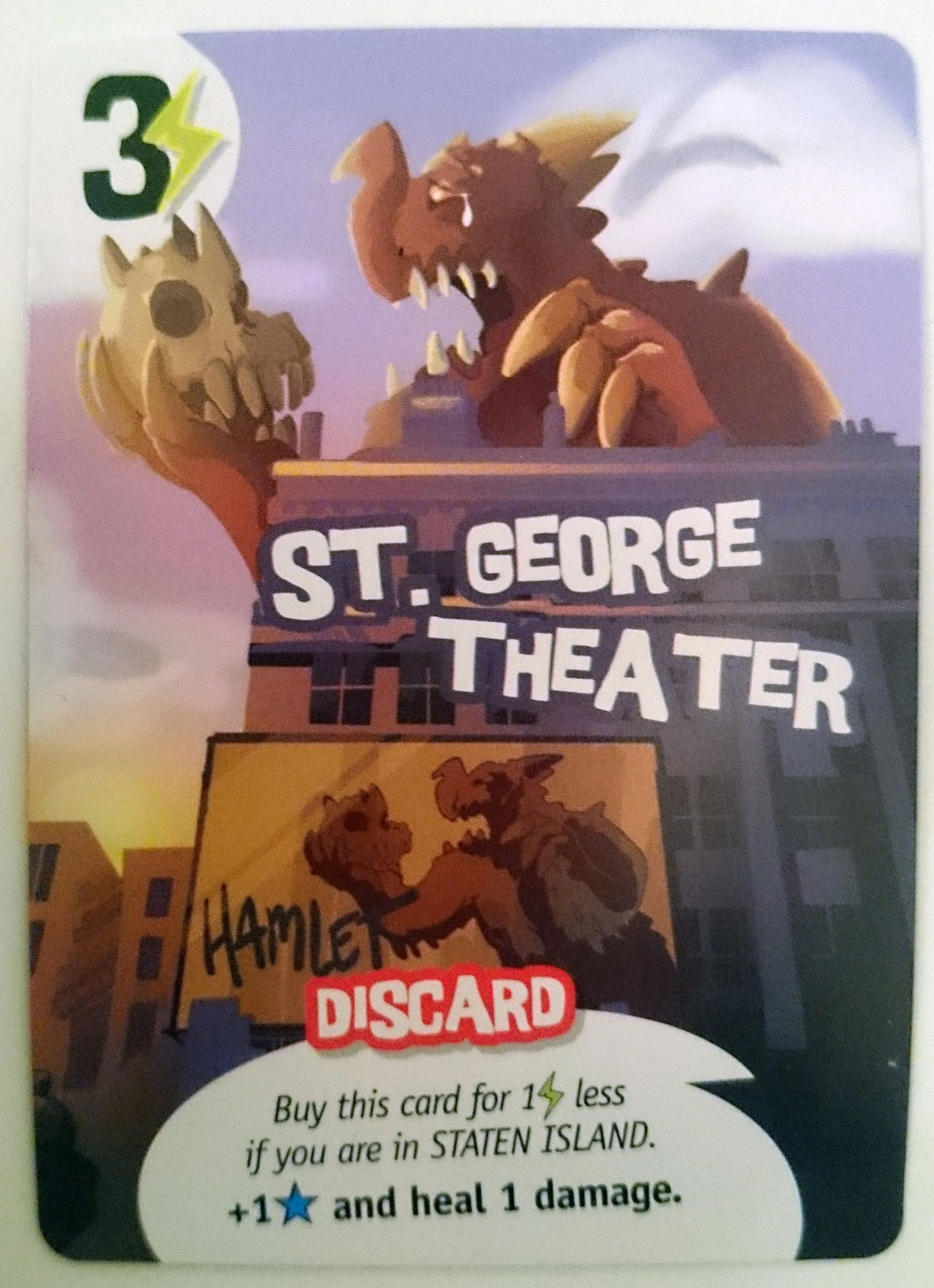 Lancez les dés, usez de tactique et faites la bonne combinaison. Piétiner tous les quartiers de la ville et détruire des immeubles vous fera gagner des points. Mais attention aux unités militaires qui font feu sur vous à chaque face “OUCH” lancée. Attirez sur vous le feu des projecteurs et emportez le titre de Superstar. Ou devenez le défenseur de la ville aux cotés de Lady Liberty.