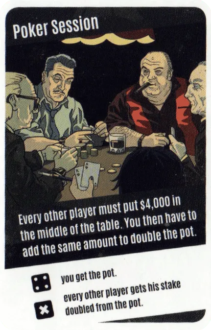 Each player controls gangster cards that serve to either gain money or attack other players. Actions are planned secretly, placed face down, then played in turn. Often you need certain business cards to succeed. If you don’t own them yourself, you can negotiate deals with the other players. The players bargain, spy, threaten, and deceive each other.