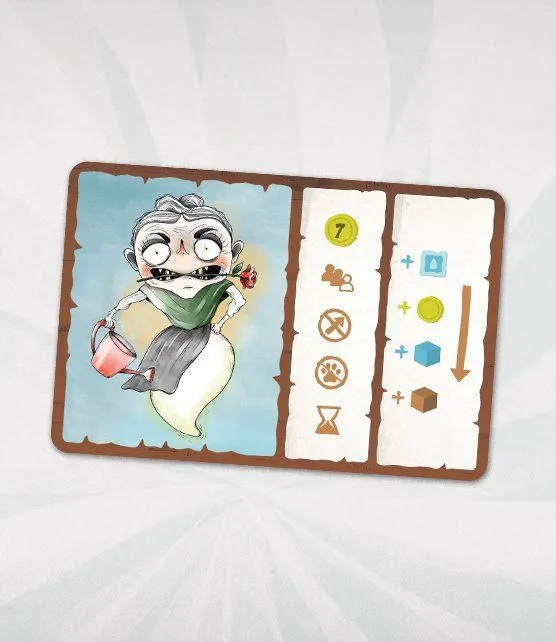 Money, water, and fertilizer management is the key to winning La Familia Hort, with your goal being to have the most experience points after Granny Hortensia’s three visits. The game is played in rounds, and each round has five steps determined by the active round card: