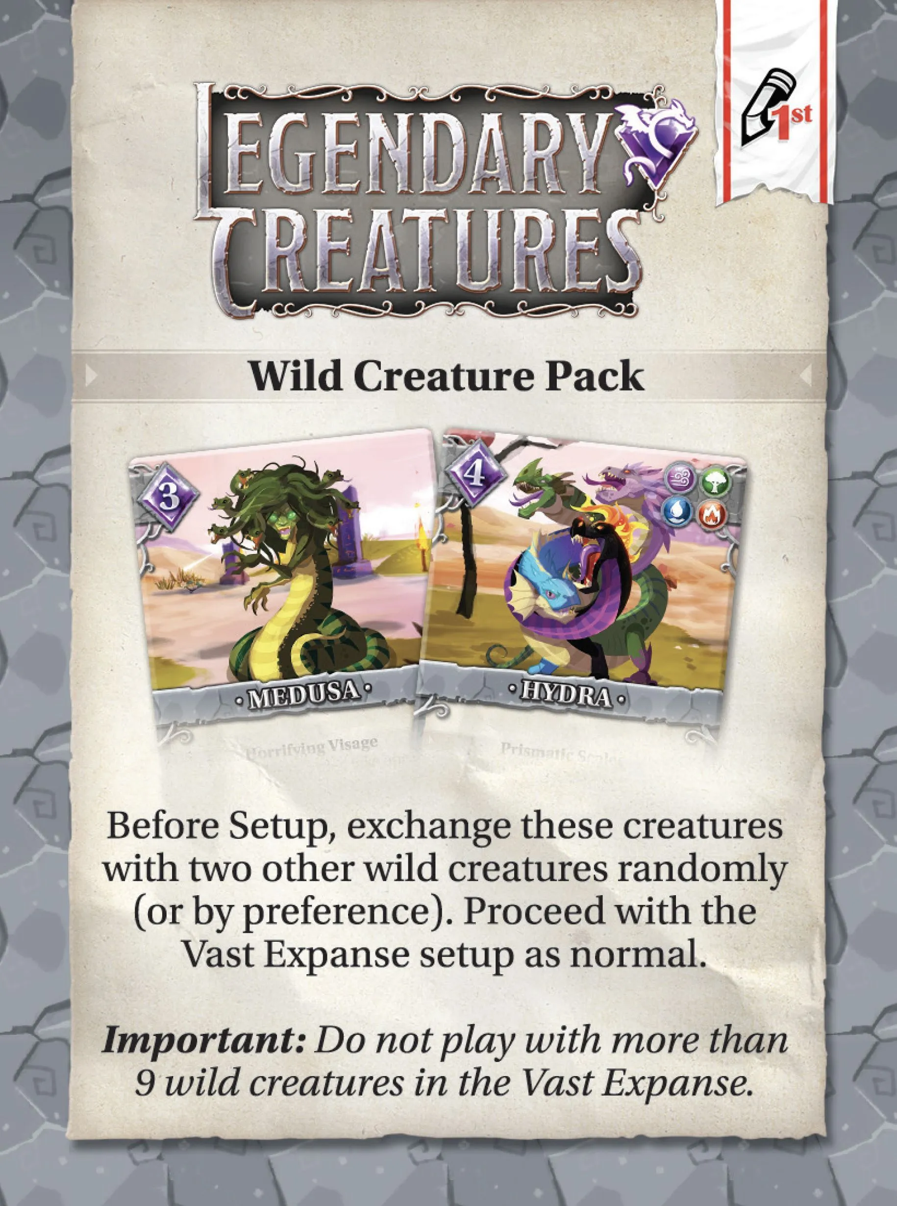 The objective of Legendary Creatures is to win the trial and advance to the rank of Druid. Players do this with the aid of fantastic creatures who assist them in their quest for renown, whatever form it may take. An apprentice’s final rank in each elemental realm, renown earned through great feats, and expeditions to distant landmarks determines who becomes the next Druid!