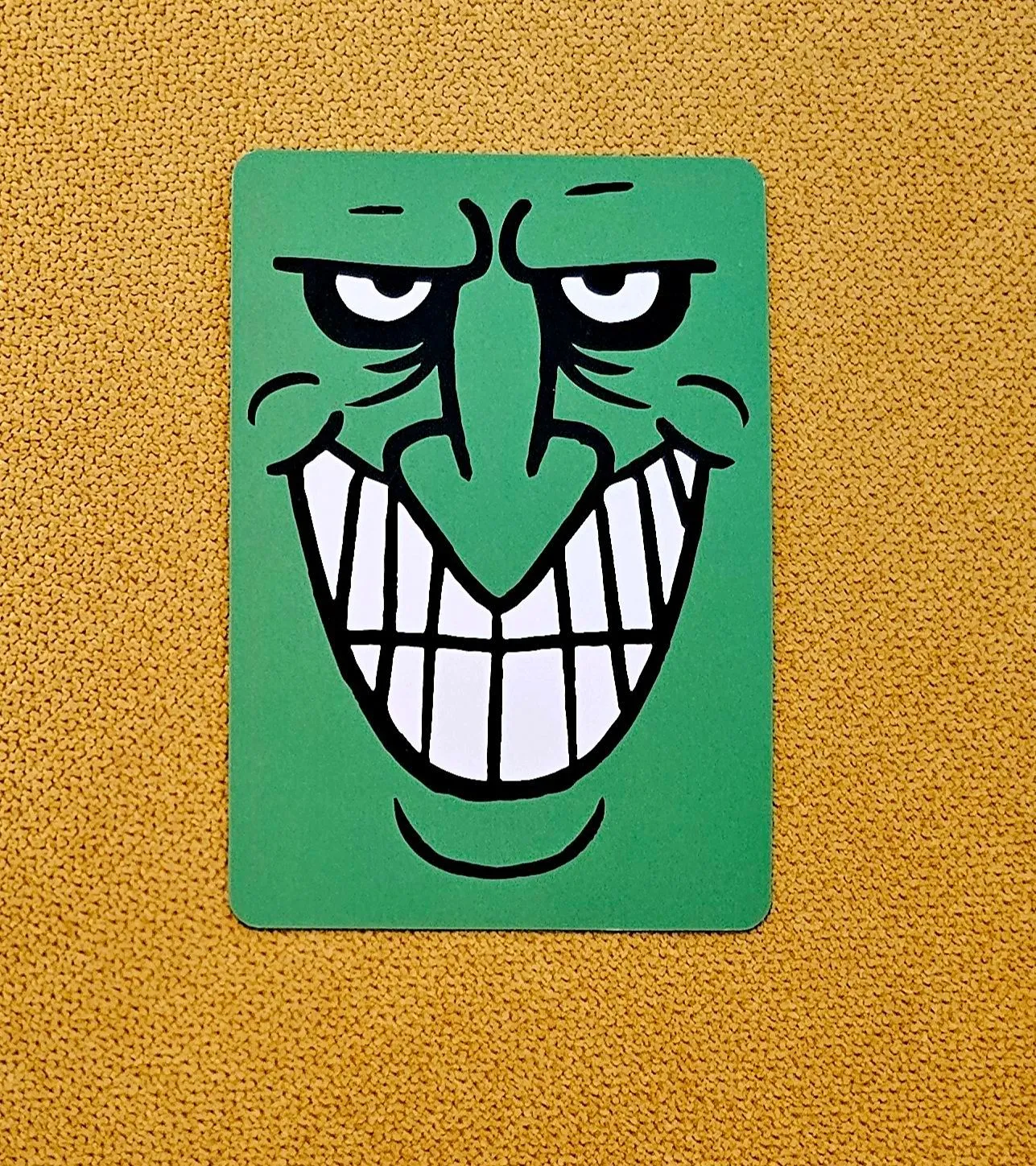 The aim is to lay four Good Faces in front of you, by turning over cards from the top of the pile — but beware! Turn over a Bad Face and it’ll chase all the Good Faces you were collecting away. So think again: do you turn over the top card, or pass the pile on?