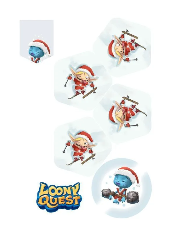 In the drawing game Loony Quest, players study challenging level cards, then try to replicate the outline to meet targets and avoid obstacles on their tracing sheets. Once finished, players place their sheets on top of the level card to see whether the drawings line up with the targets they meant to hit — or avoid. Largely inspired by video games, Loony Quest players discover various worlds, play with 3D and 2D levels, run into loony monsters — Loonies — and big bosses, trigger special stages, collect bonuses, use penalties on opponents, and gather as many Xperience points as possible to win.