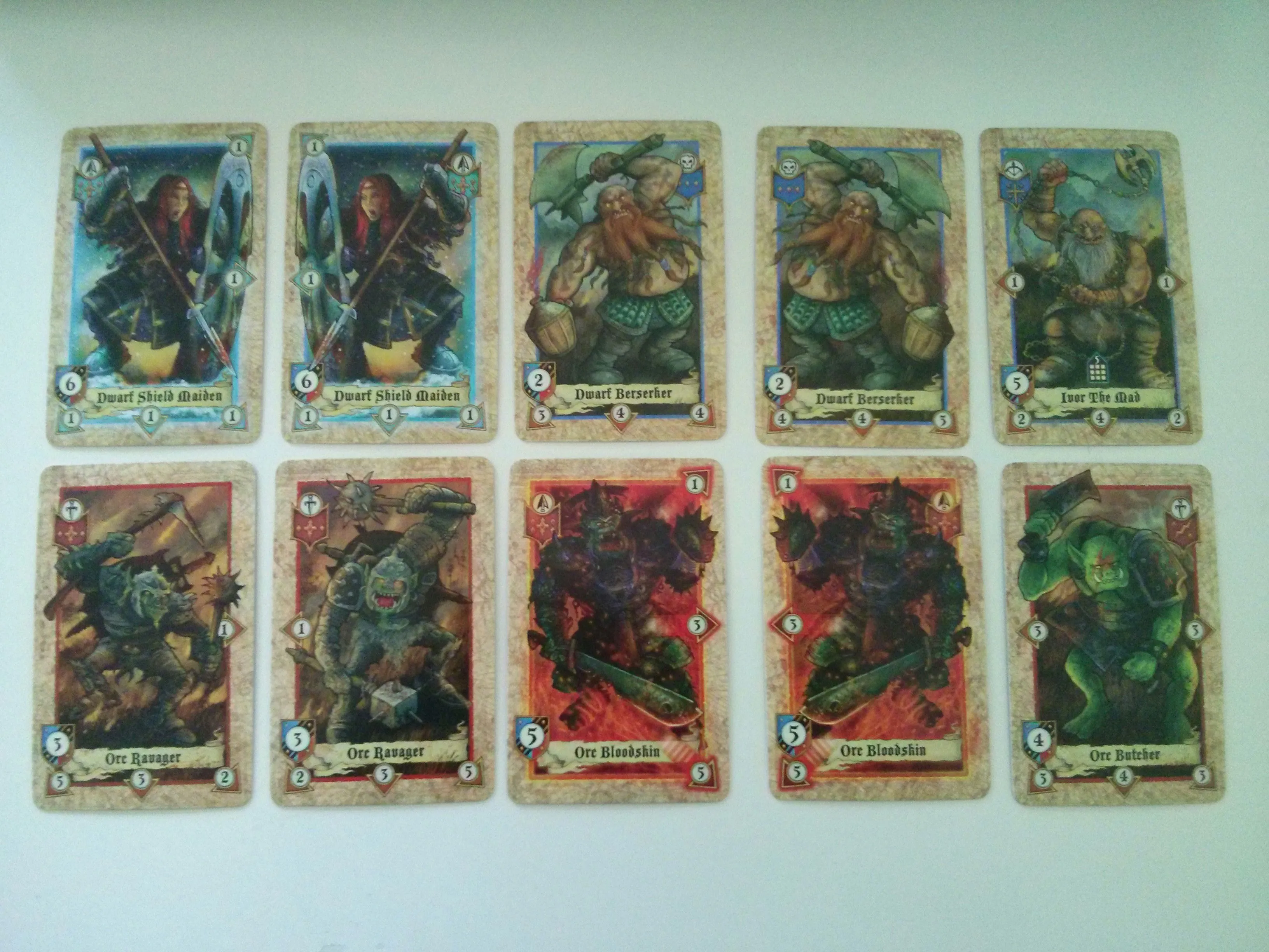 These factions are differentiated by their exclusive cards and strategies; the Dwarf faction plays more defensively, using some Ranged cards and powerful Berserker units to pick-off assailants, while the Orc army encourages players to attack more vigorously, often committing kamikaze moves to their tactical advantage.