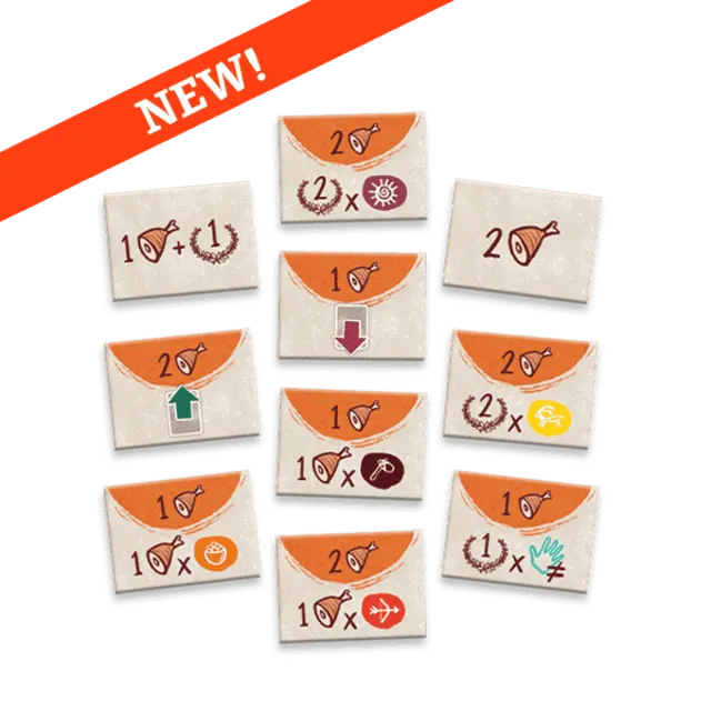 À chaque tour, vous devez placer votre pion totem sur la piste d’offre, puis en suivant l’ordre des pions sur la piste, vous acquerrez des cartes de personnage ou de bâtiment et les ajouterez à votre tribu. Chaque carte a des effets spécifiques et peut rapporter des points de prestige à mesure que vous construisez des bâtiments spécialisés et que vous vous préparez judicieusement aux événements futurs.