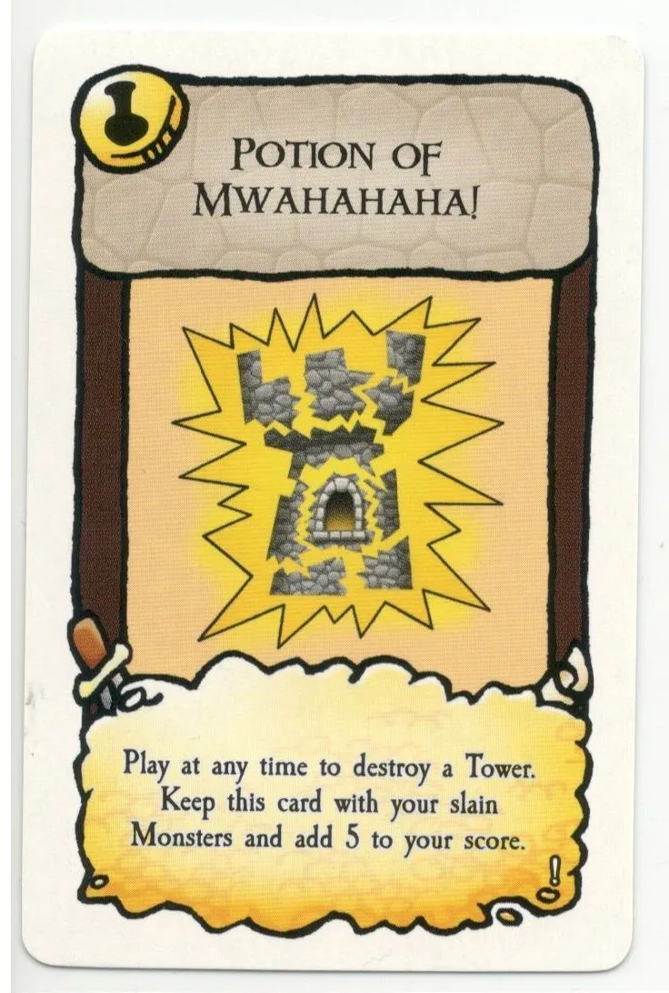 In this hybrid game, the Munchkin monsters have found the Castle Panic towers and are on the rampage! Players need to combine cards to hit and slay the monsters before they destroy the castle. The card combos available in Munchkin Panic are created from a unique mixing of the decks of the two source games. Each defeated monster becomes a trophy and gives up its treasure to the victor. If players work together to defeat the monsters, the player with the highest point count becomes Master Munchkin — but players must balance their self-interest with the cooperation necessary to survive. If players get too greedy, the monsters will stomp the castle flat while the players are too busy fighting amongst themselves!