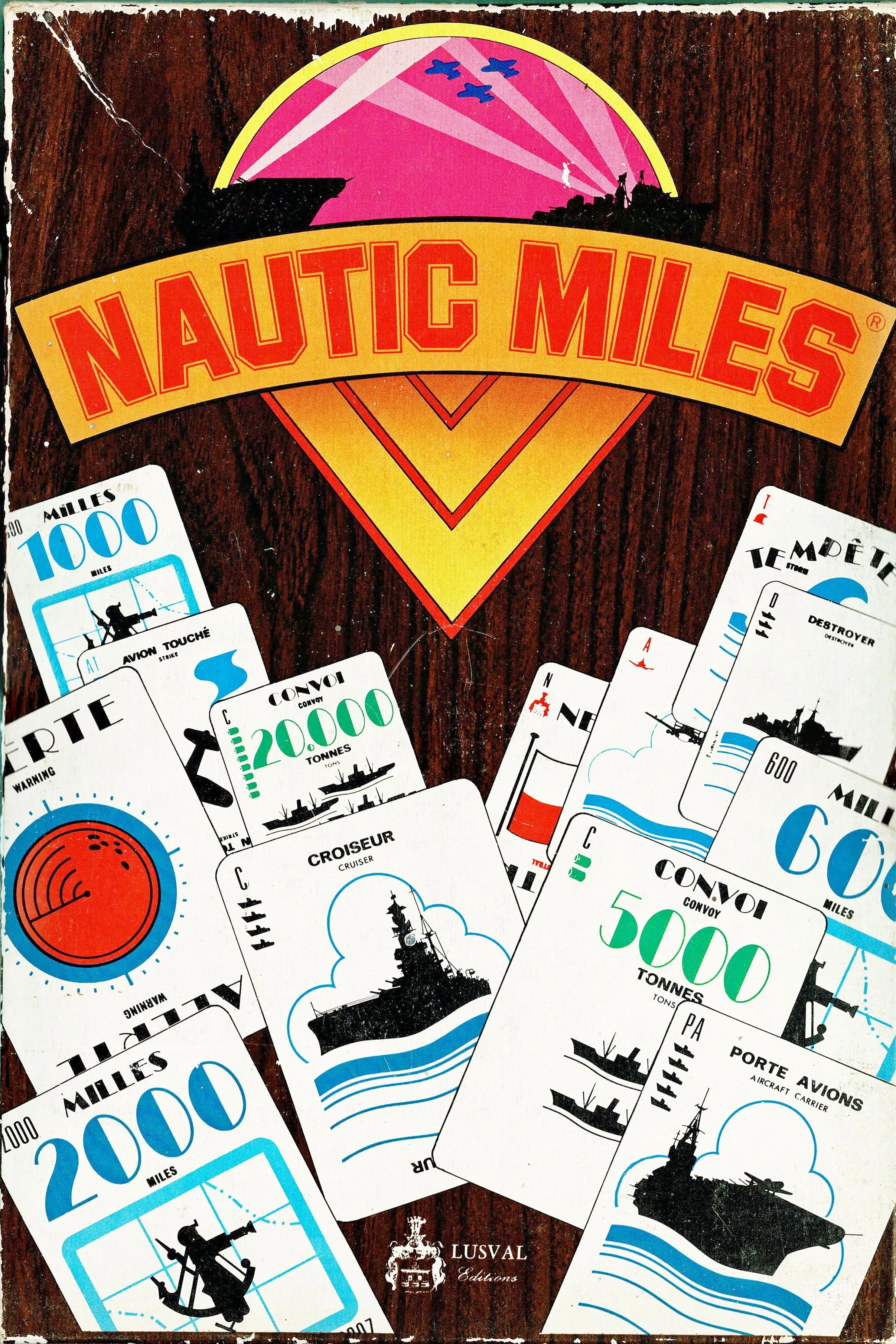 Nautic Miles ajoute au parfum de votre enfance la stratégie et la finesse des plus grands jeux de cartes. Toutes les séductions de la bataille navale en 110 cartes : course de vitesse, pilonnage d’avions, attaque de destroyers, mines, tempêtes, etc… Que vous y jouiez à deux, en famille, par équipes son succès sera assuré. Chaque joueur doit chercher à faire parcourir un minimum de 4 000 miles marins aux convois qu’il met à l’eau en cours de partie. Simultanément, il doit s’efforcer de ralentir les convois des autres joueurs ou, …les détruire. Contient :