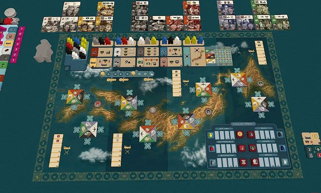 Tous les mécanismes fondamentaux du Nippon original sont présents, mais les composants, les graphismes et le design ont été améliorés, et de nombreuses fonctionnalités de jeu ont été retravaillées pour s’adapter aux tendances actuelles. Nippon : Zaibatsu propose de nouveaux types de ressources, des vaisseaux profondément remaniés avec de nouvelles règles de mission Iwakura, des usines beaucoup plus variées, des tours de consolidation offrant de nouvelles récompenses, et bien plus encore. De plus, le jeu dispose désormais d’un mode solo automatisé.