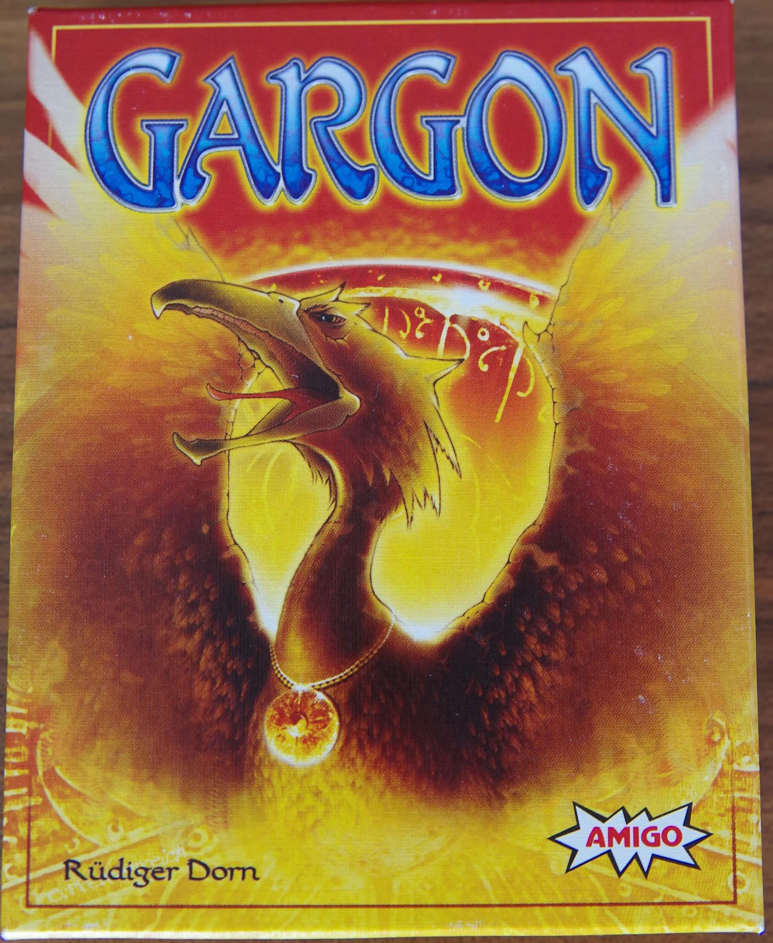 Gargon is fantasy themed card game for 3-5 players. There are 6 suits of Gargon cards, each representing a fantasy creature, with values 0 to 15. The cards also show amulet symbols, with the low value cards having more, the highest value cards having none. At the end of the game, the player who has won the most cards in each suit gets a bonus card worth ten points, or five points if tied - this is what the 18 bonus cards are for. Each amulet is also worth one point. The zero value cards have no amulets themselves, but double the amulet count for that suit, or quadruple them if both 0 value cards in that suit have been won.
