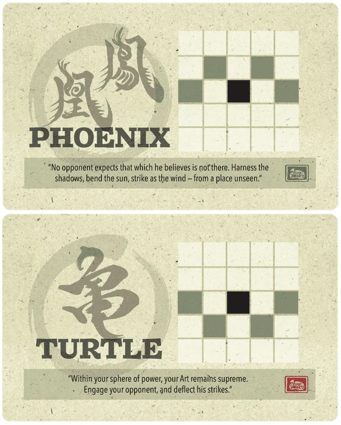 Les maîtres de ces écoles effectuent le voyage vers l’Onitama avec leurs disciples les plus prometteurs afin d’affronter leurs adversaires dans cette enceinte sacrée et prouver leur supériorité.