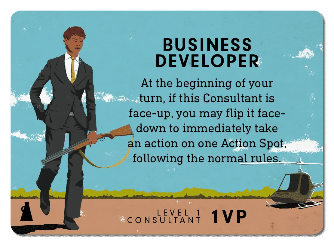 On your turn in Peak Oil, you assign your agents to different action spots on the board. If your agents are in the majority at any given action spot, or you decide to send mercenaries to their help, they squelch the competition there and allow you to take the linked action. Actions include developing and harvesting oil fields, building pipelines, hiring new agents, buying new ship contracts, investing in oil replacement technologies, conducting PR campaigns, engaging in piracy, and manipulating public opinion and oil prices.