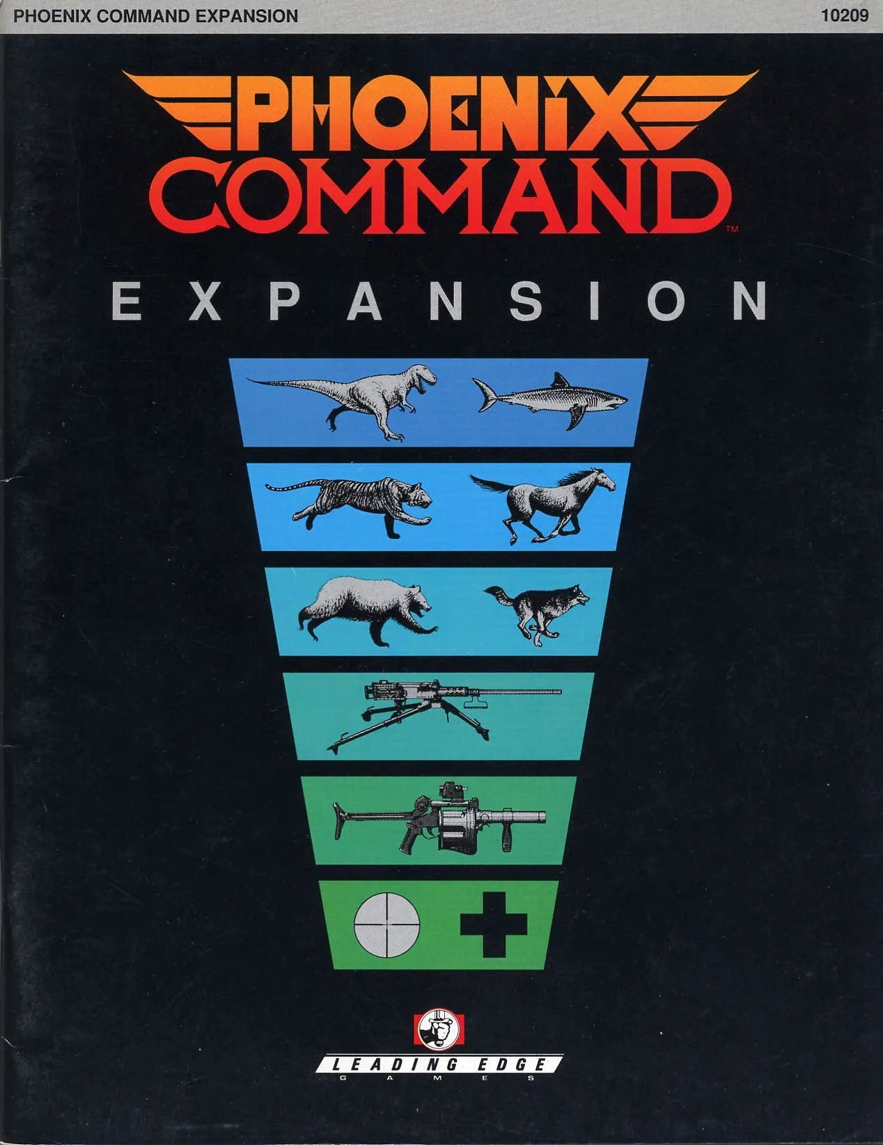 While primarily thought of as a combat system for Leading Edge’s Rhand Morningstar Missions RPG, the original Phoenix Command rules were also intended to be used for wargaming, either on the tabletop or a hex map. The game system concentrates on “ultra realistic” (in the form of ultra-detailed) firearms combat: “Phoenix Command combines accurate simulation of gunshot wounds with detailed aiming and firing rules, and authentic modern weapon data to create a simple, fast-paced game with an incredibly realistic feel.”