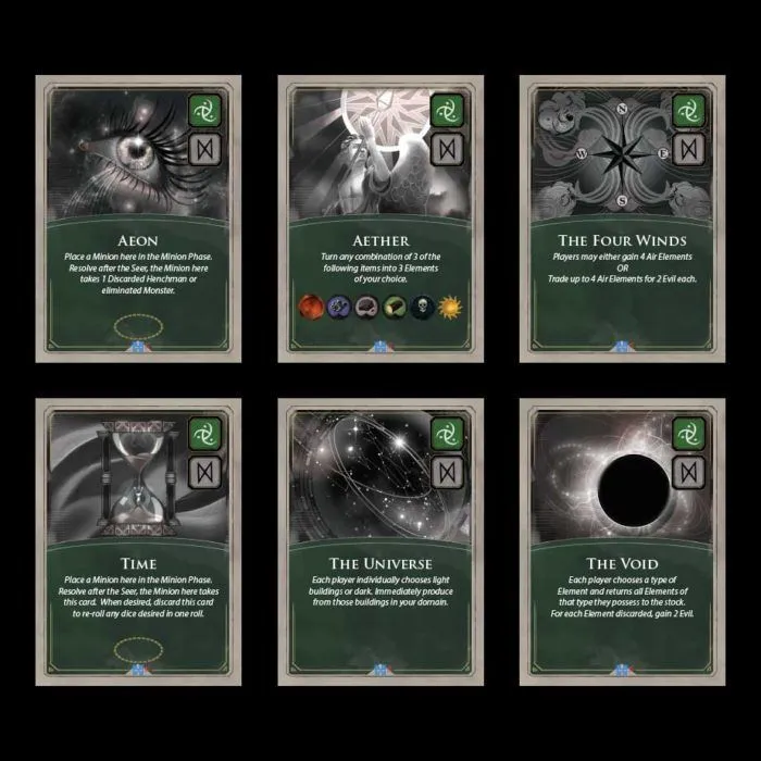 Dark Domains is a worker placement game where 2-5 players attempt to create a Domain that provides them the most evil, depicted in the game by skulls. Players must use Minions, Henchmen, Monsters & Magic to stamp out the good, repel the Torin Company and cover their land in darkness.
