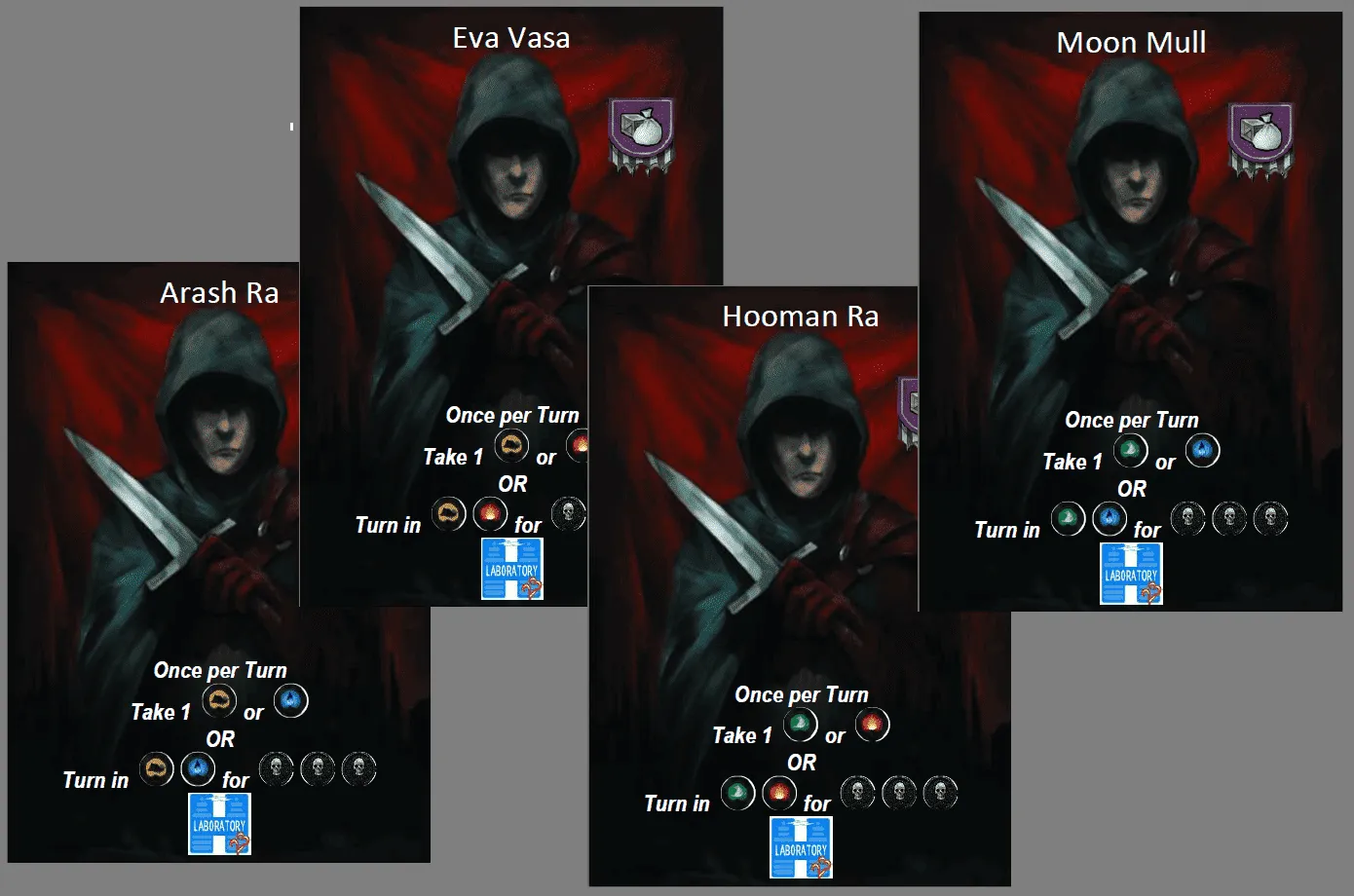 In Dark Domains each player takes on the role of a city leader attempting to expand the frontier of Harrows into the hinterland. Unbeknownst to the powers in Harrows some of those leaders, namely the players, are secretly evil to the core and in the thrall of the Necromancer. Once away from the bustling city and the oversight of the courts, these overlords create domains that outwardly appear to be beacons of light and hope. Eventually however, their true colors will come through and those upstanding pillars of the community will retreat to their lairs as the masquerade ends and their lands begin to decay into wastelands overrun by foul monsters and nefarious henchmen.