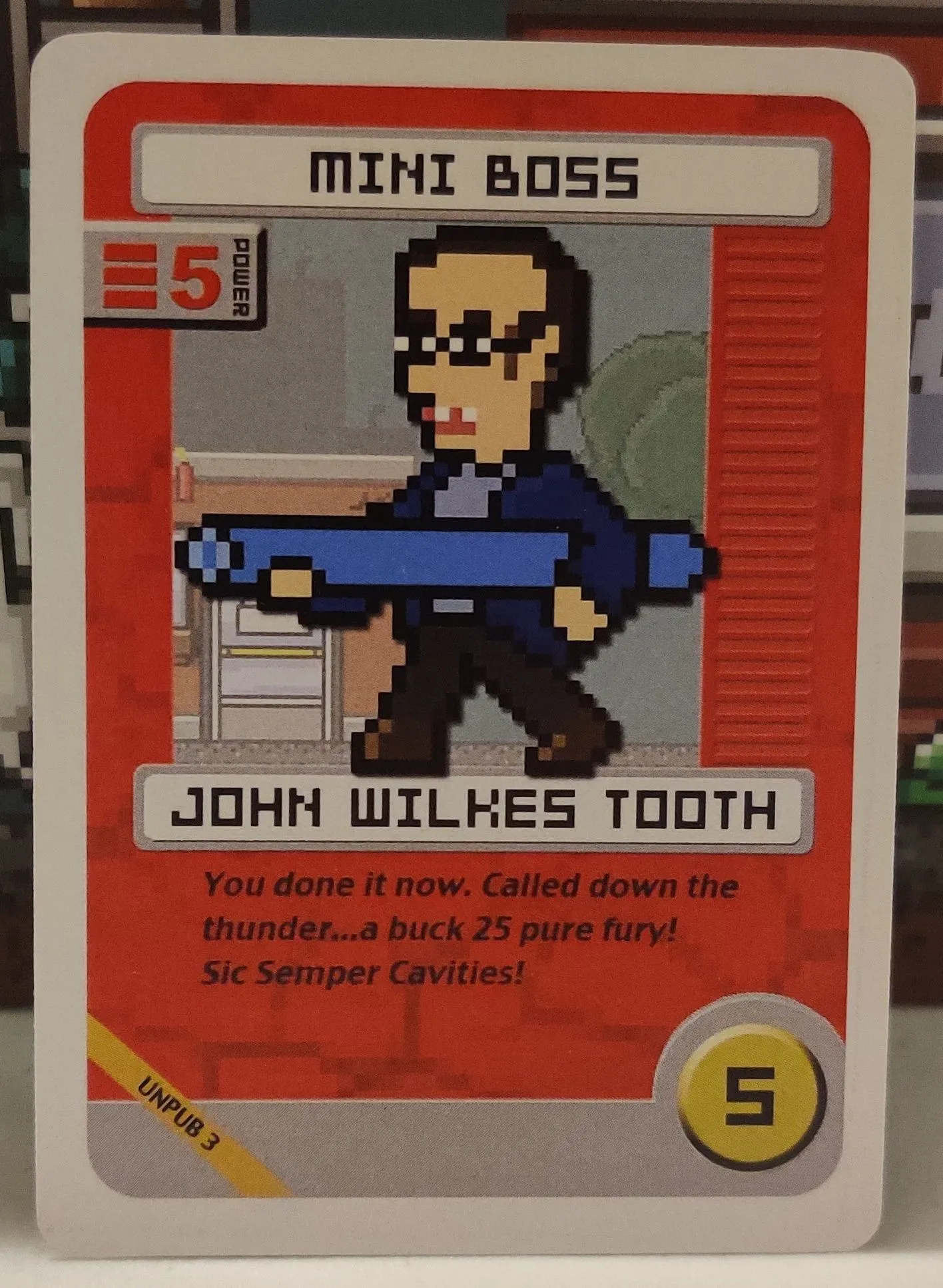 Pixel Lincoln: The Deckbuilding Game plays in about 45 minutes, and players will explore the highly customizable levels by revealing cards as they progress. Cards vary from items/power-ups to enemies, NPCs, secrets, bosses and much more. As you purchase or defeat these cards, they are added to your deck. Defeat all of the bosses or die trying!