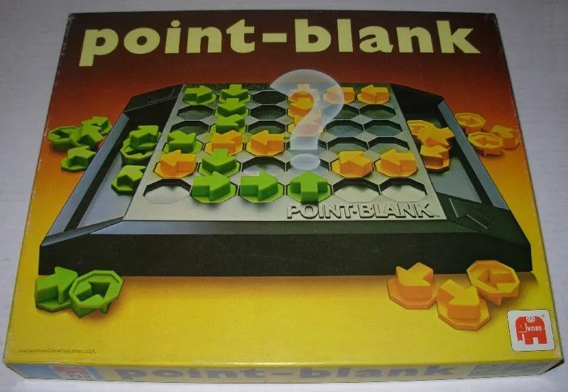 From the box: Finish off your opponent in a Point-Blank duel for position! Block your opponent in and win! Move straight, diagonally, or off the edge to get your point across! Be the last player able to move, and you win!