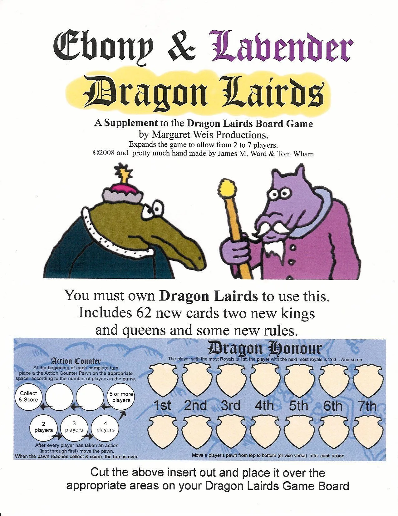At the start of the game, each player is given a dragon clan and chooses to play either the king or queen of that clan. The object is for your clan to score the most points in Royals by the end of the game and thus become the ruling Dragon Monarch.
