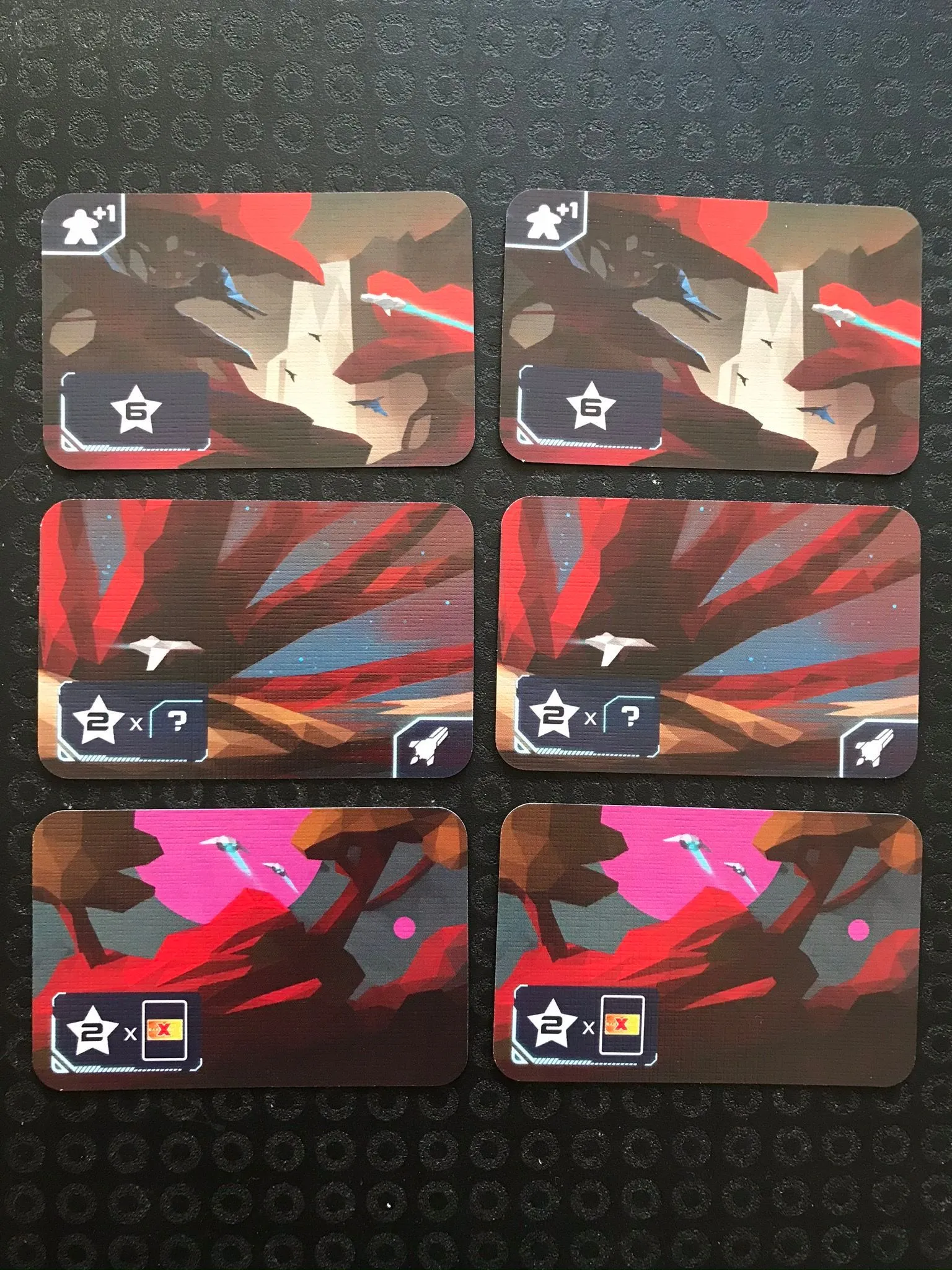 The game ends when a player has launched four settlers’ ships into space. Players score VP from their launched ships and from their reputation track.