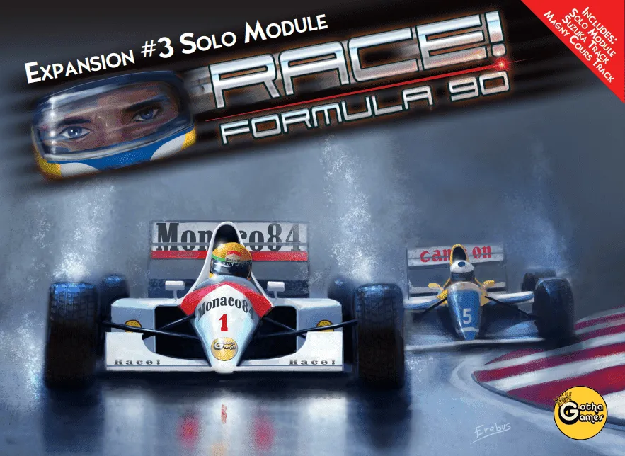 In Race! every game turn represents one or more laps of the track, and each player is in control of only one car. Other cars, called robots, move automatically on the track fighting between them and the human players. Players are provided with a set of racing cards and a car chart to keep track of all available resources (tires, damages, reliability). By playing racing cards, they move along the track and in so doing they spend resources. Movement can be affected by trajectories on the track, straight, corner and braking sections, opponents and other special events like yellow or blue flags.